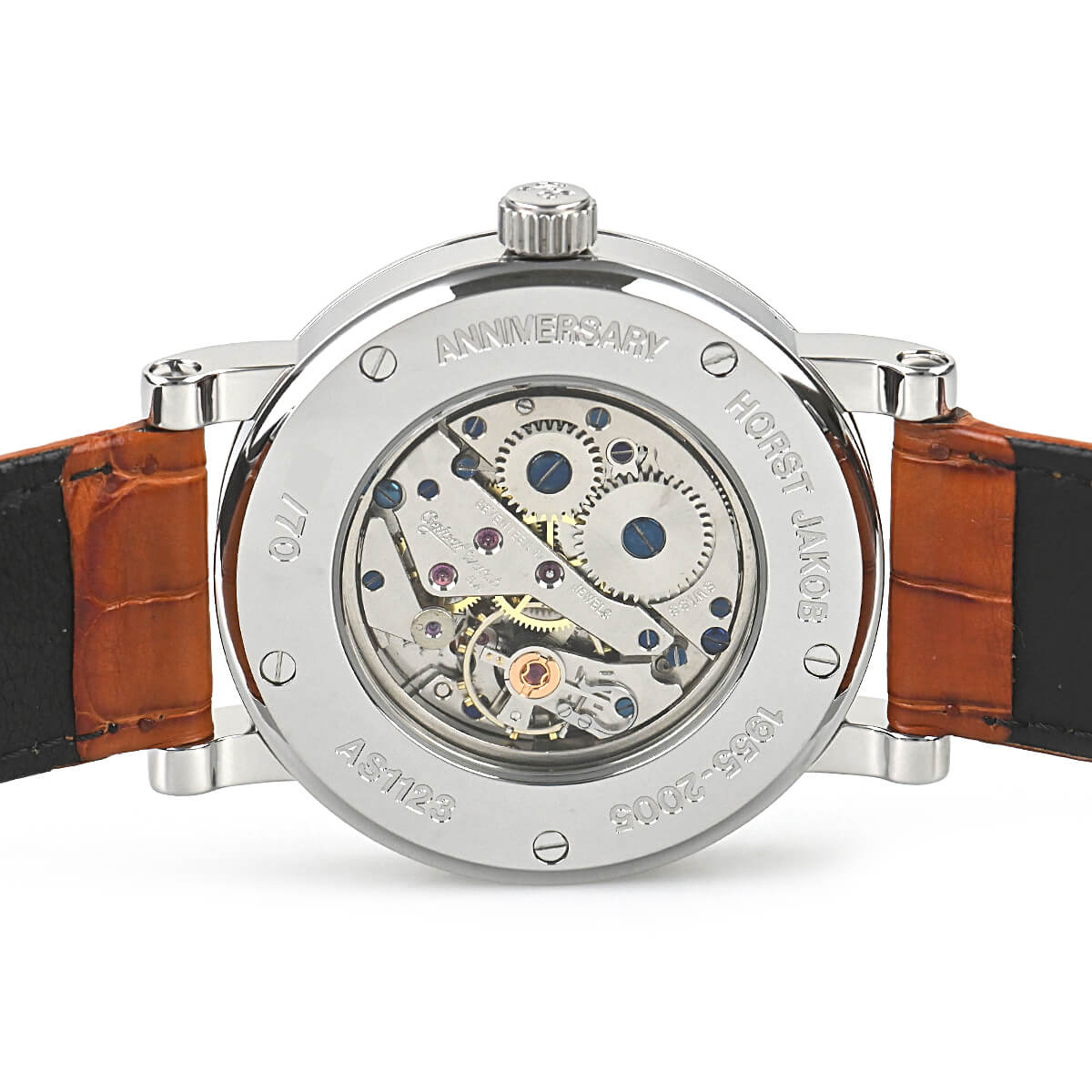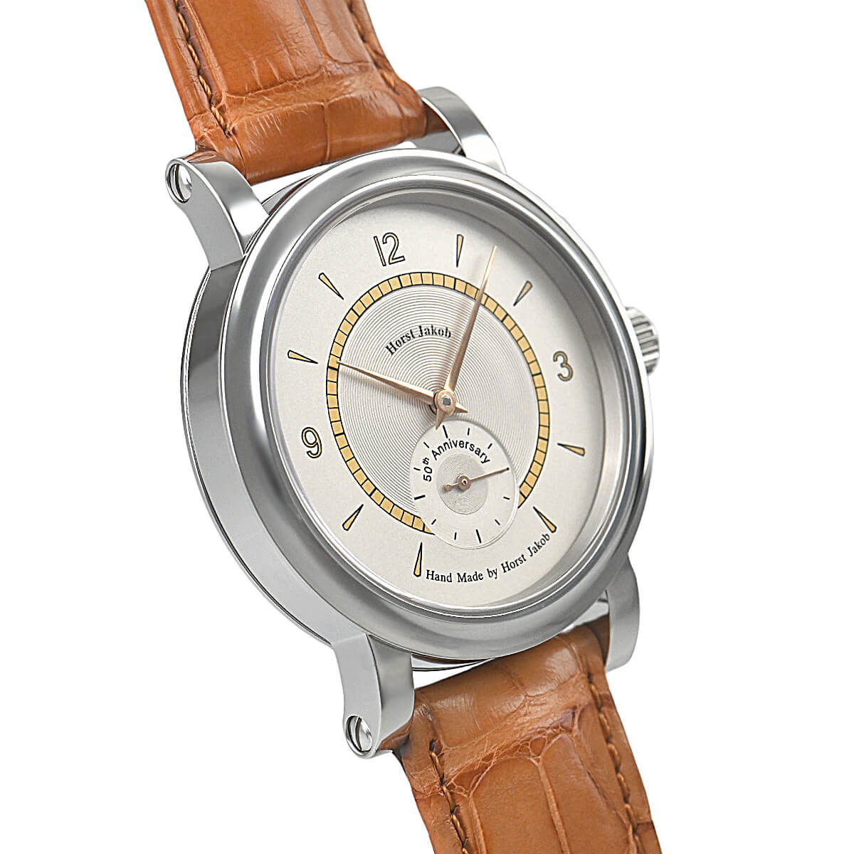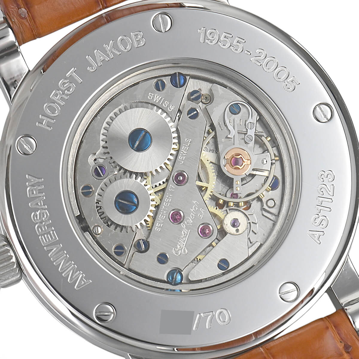 2005年にクラウスヤコブの父、ホーストヤコブがショップをオープンして50周年になることを記念して製作された限定モデルです。ムーブメントは1950年代のアシールド社製AS1123を搭載。