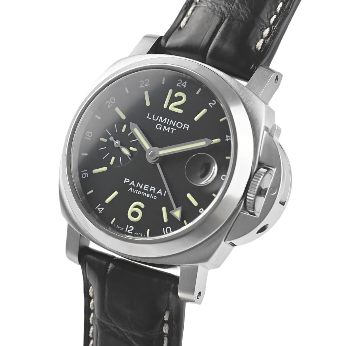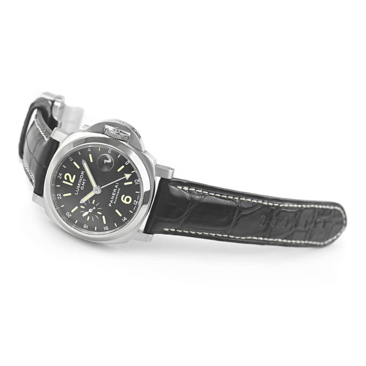 J番“2007年製”【PAM00244】ルミノールGMTが入荷致しました。40mmのケースサイズで人気のルミノールシリーズに便利なGMT機能を搭載し、24時間表記のアラビア数字がカジュアルに見せてくれるモデルです。