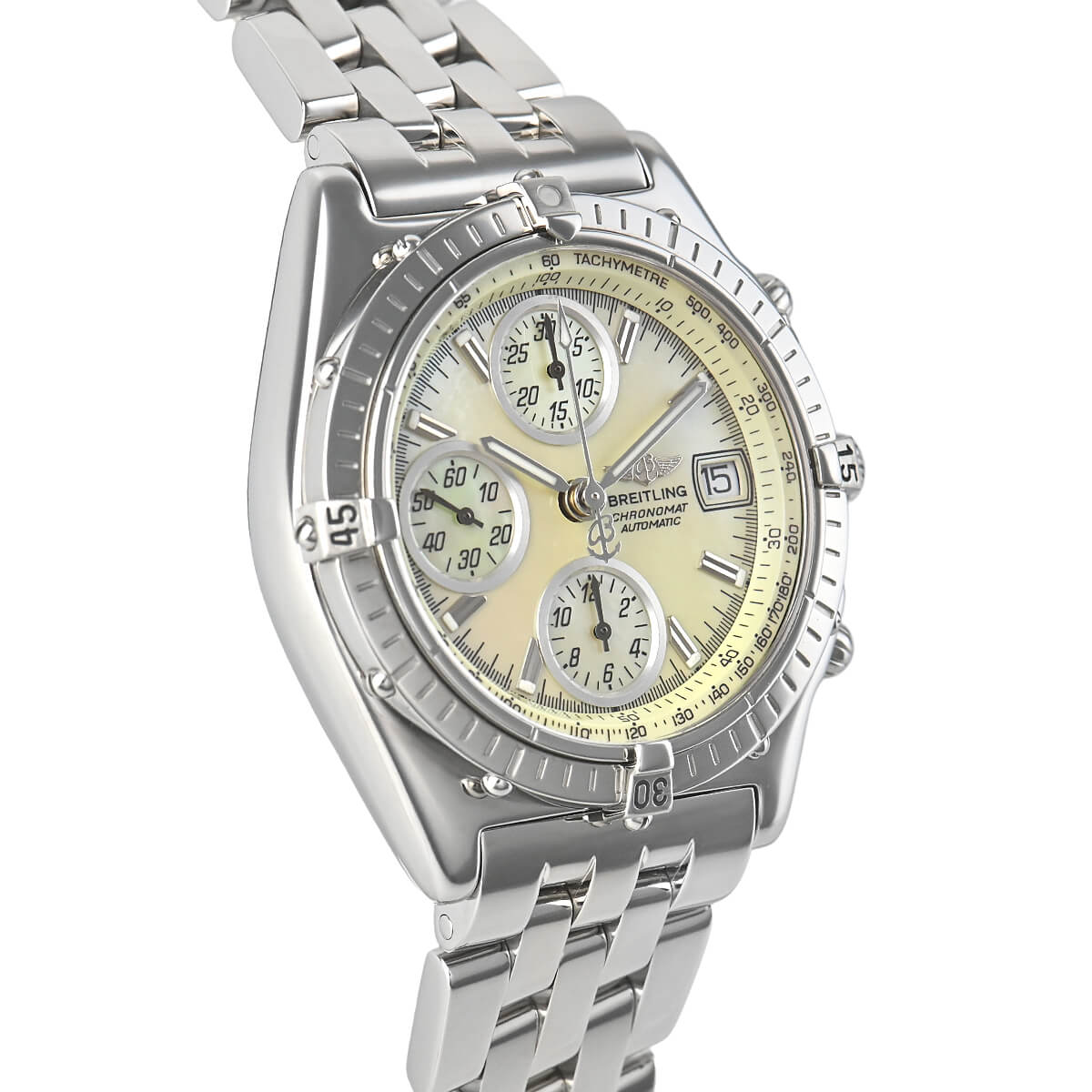ブライトリングを代表する人気モデルであるクロノマットが入荷しました。現行型に比べると少し小振りな旧型モデルで、日本人の細身の腕にも程よく馴染みます。