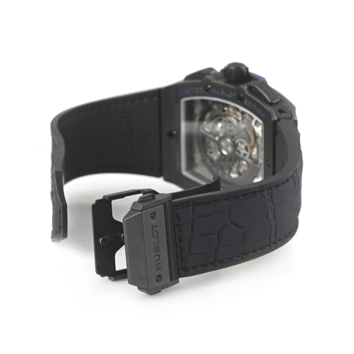 こちらはケース素材にブラックセラミックを用いた世界限定100本のオールブラックブルー仕様のビッグバンです。