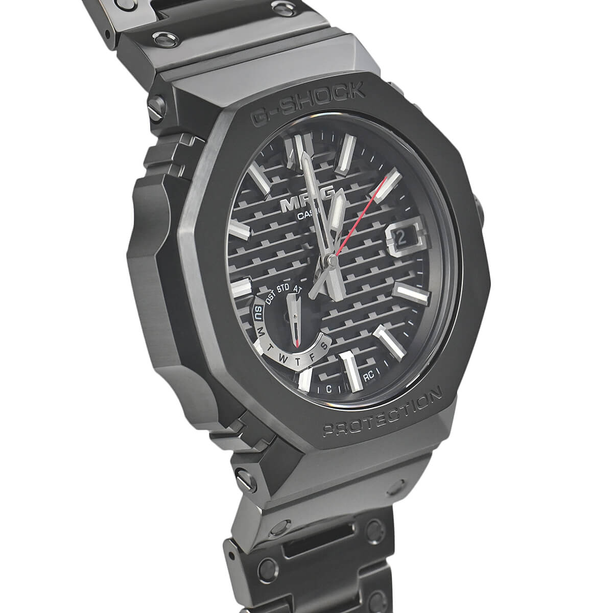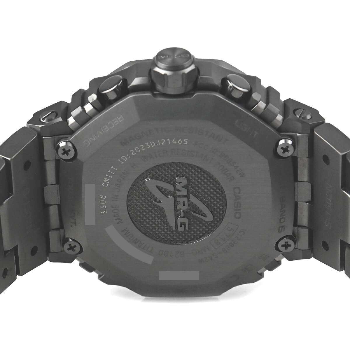Gショックの最上位ライン「MR-G」。こちらは2019年に登場した「GA-2100」のデザインをMR-Gに落としこんだ「MRG-B2100B-1AJR」。