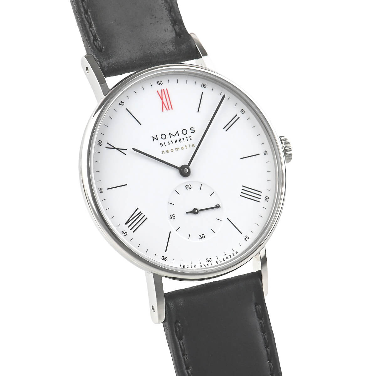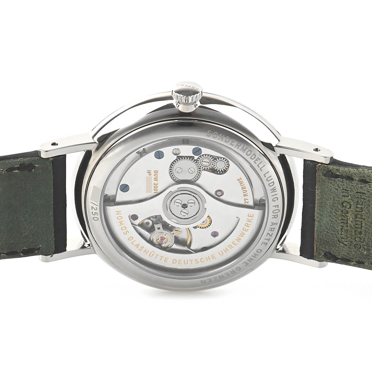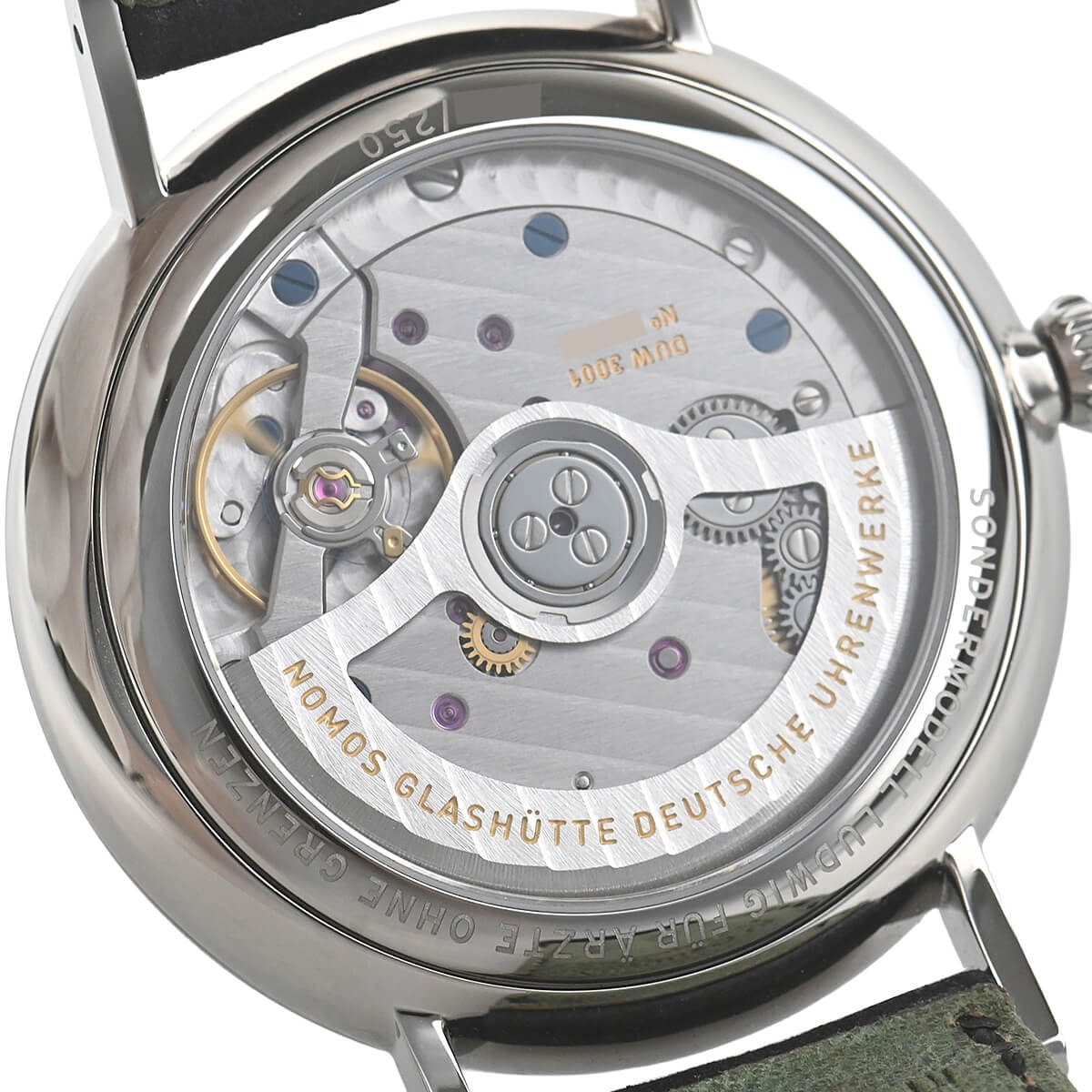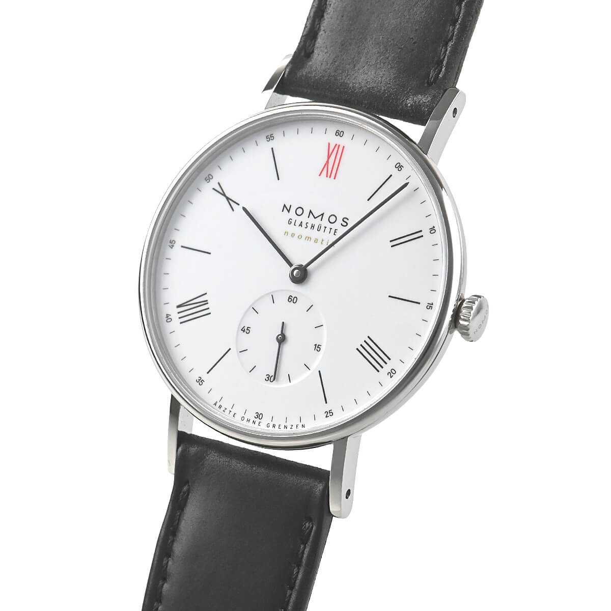 丸みを持たせた角の取れたケースフォルムが特徴の「ラドウィッグ」。こちらの【ラドウィッグ39 FUR ARZTE OHNE GRENZEN】は、ノモスが国境なき医師団のためにさらなる資金を集めるべく発表した、世界限定250本生産のモデル2種類のうちの一本。