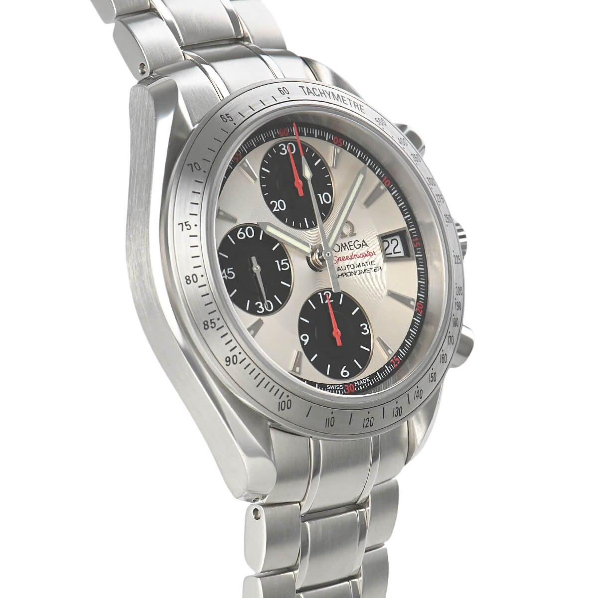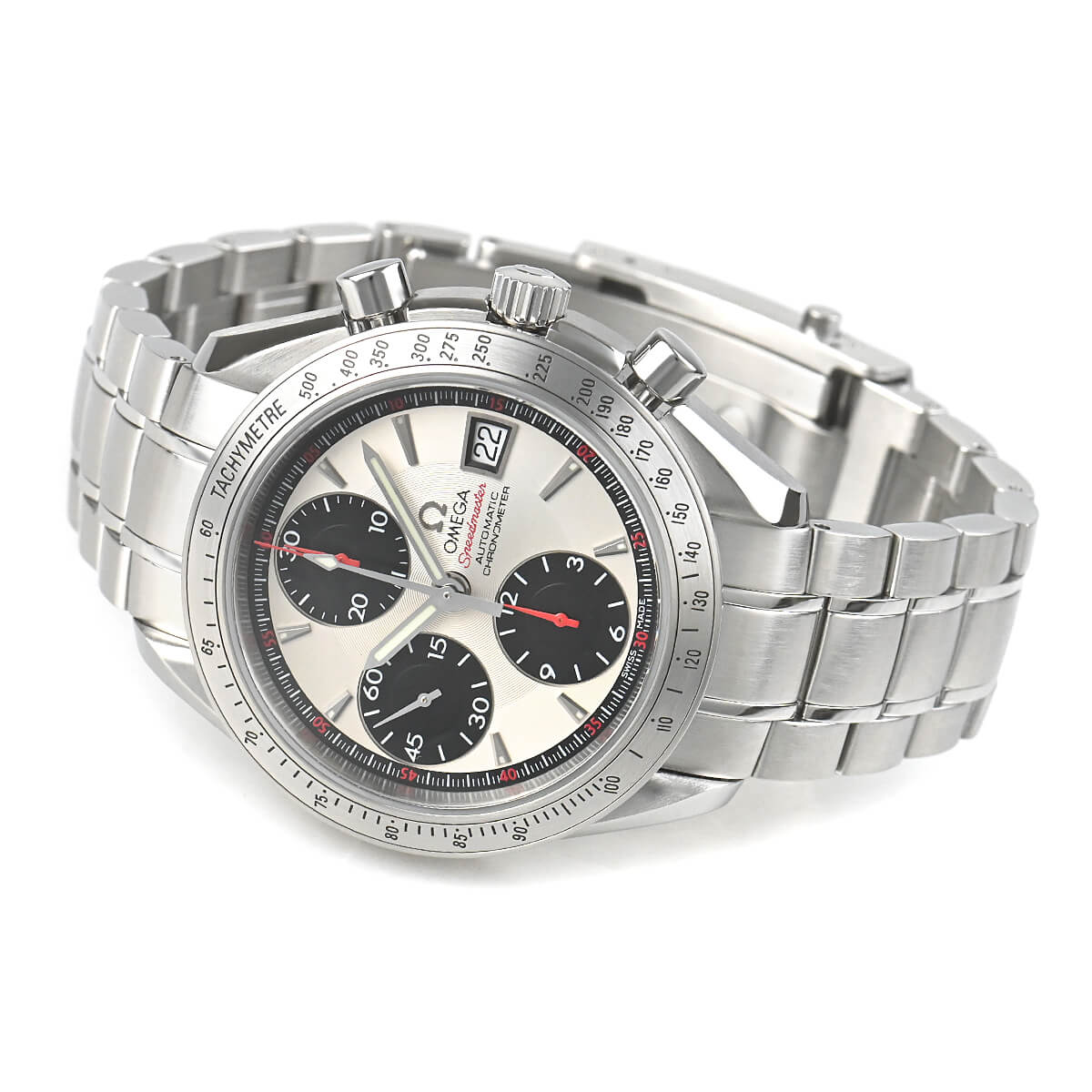 オメガの人気モデルであるスピードマスター。今回はシルバー文字盤にブラックインダイヤルがスポーティーな「3211-31」が入荷しました。