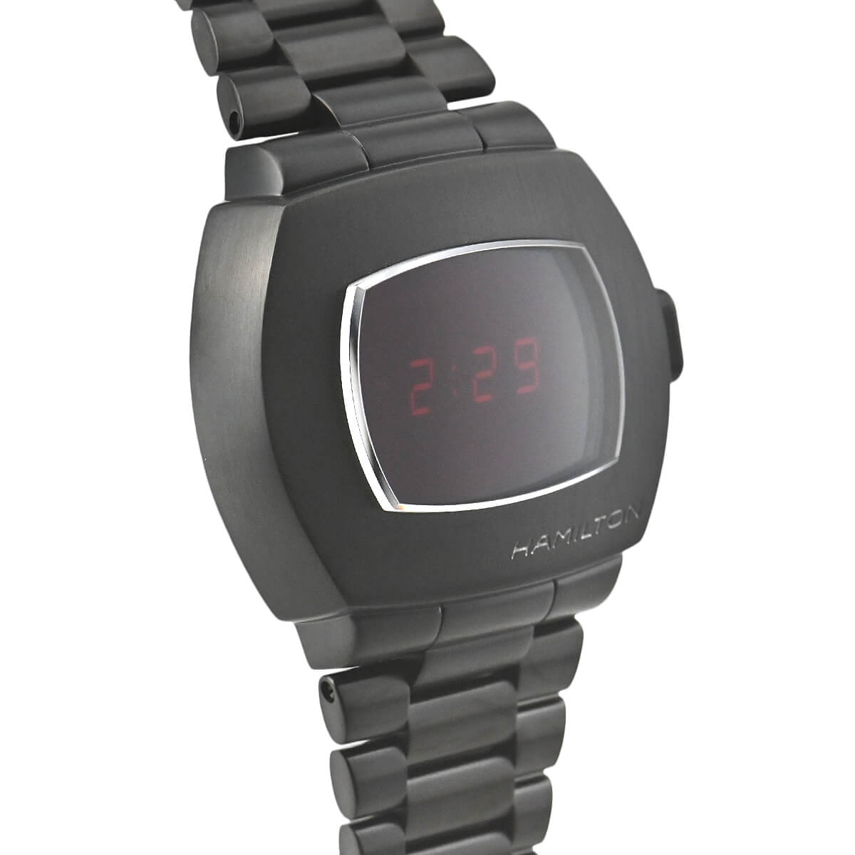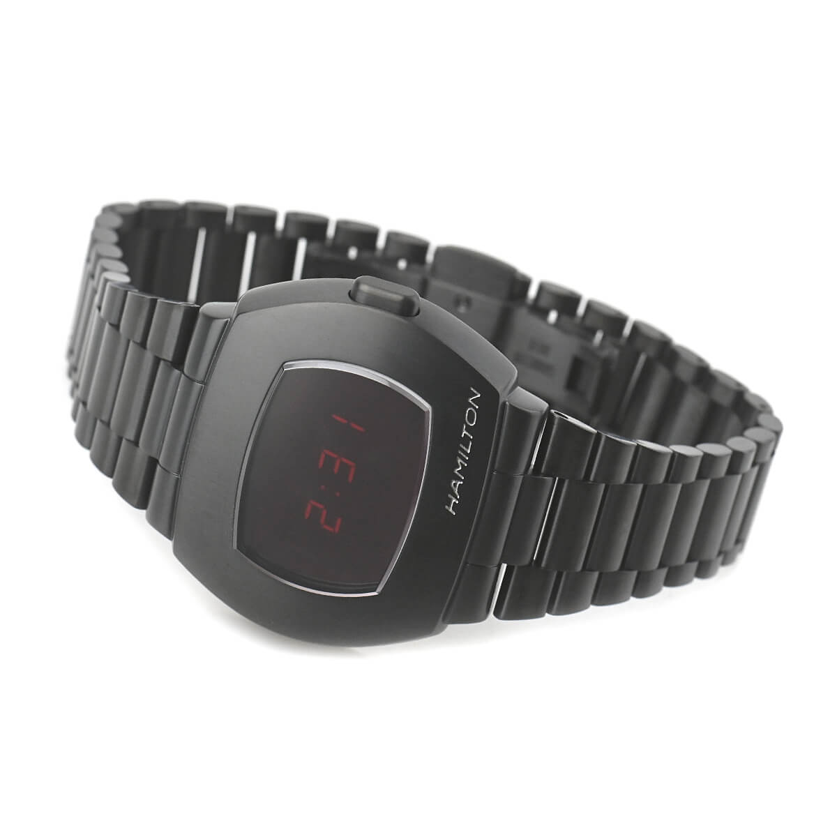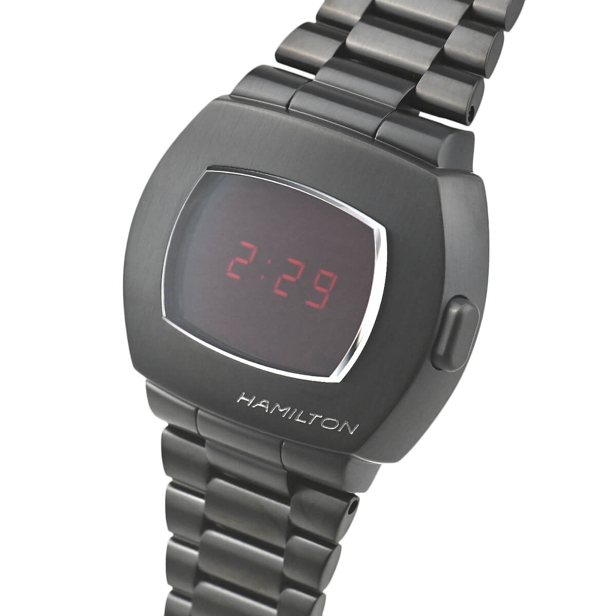 世界初のLED式デジタルウォッチ「ハミルトン パルサー」。その50周年を記念して1973年発売の2代目「P2」を復刻したモデルが、この「ハミルトン PSR」。