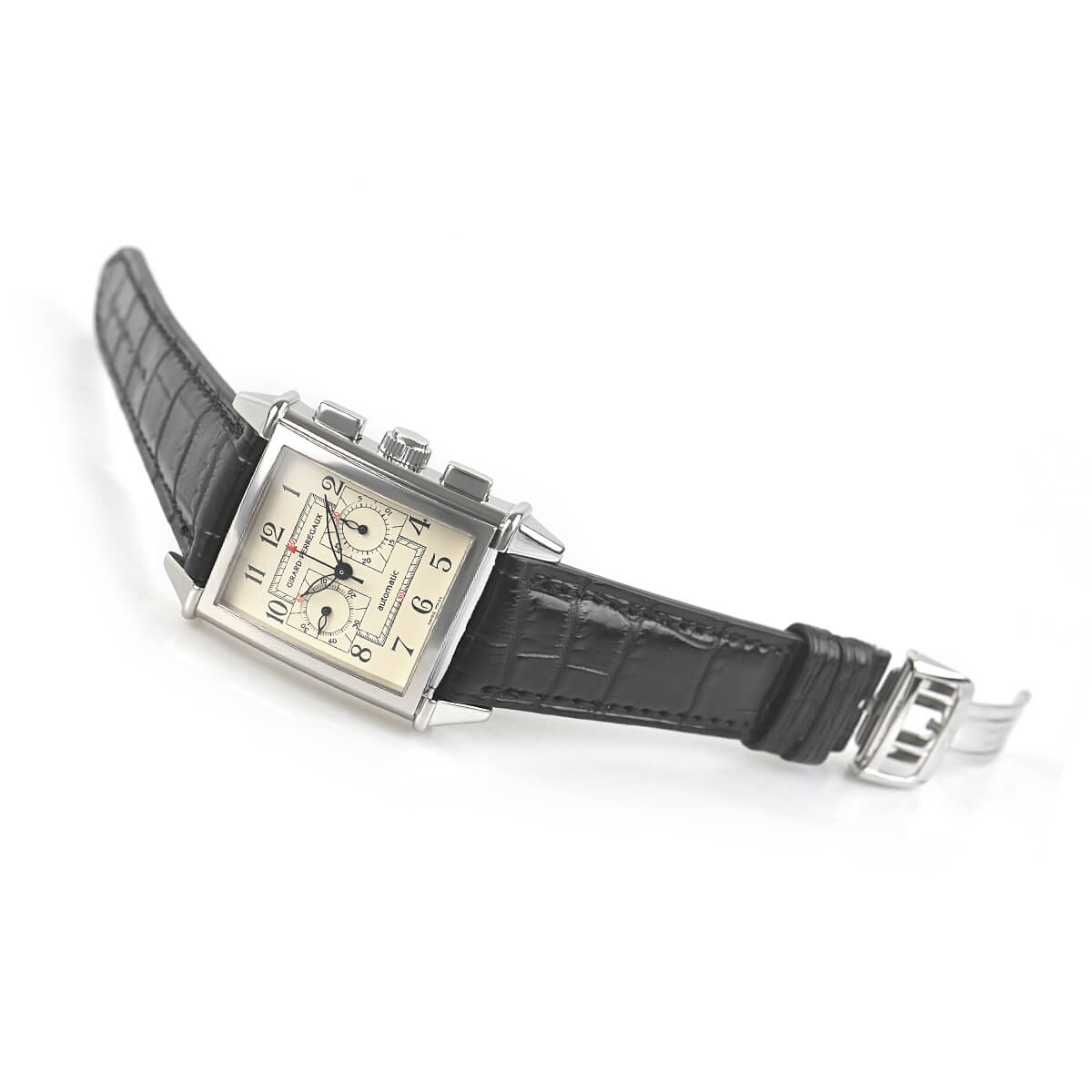 時計製造工芸の復活期である1945年、ジラール・ペルゴはアールデコからインスパイアされた丸みをおびたレクタンギュラー(長方形)ケースのモデルを創作しました。「ヴィンテージ1945」は、1995年にその復刻版としてデザインされたシリーズです。