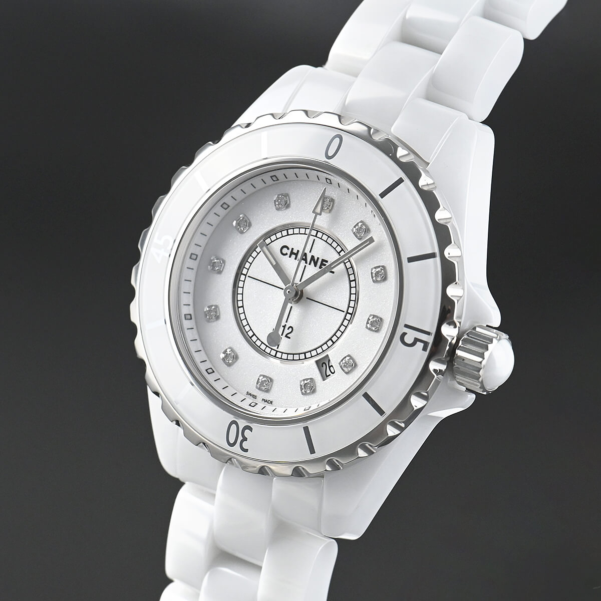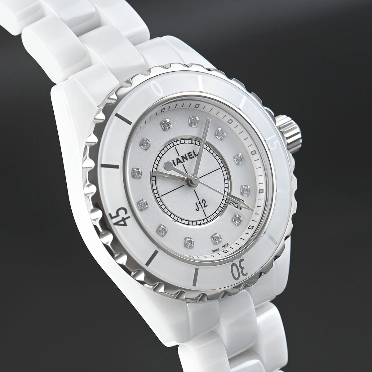男女問わず、変わらぬ人気の「J12」。こちらの33mmケースの12Pダイヤ文字盤は、シリーズ発表当時からの人気モデルです。