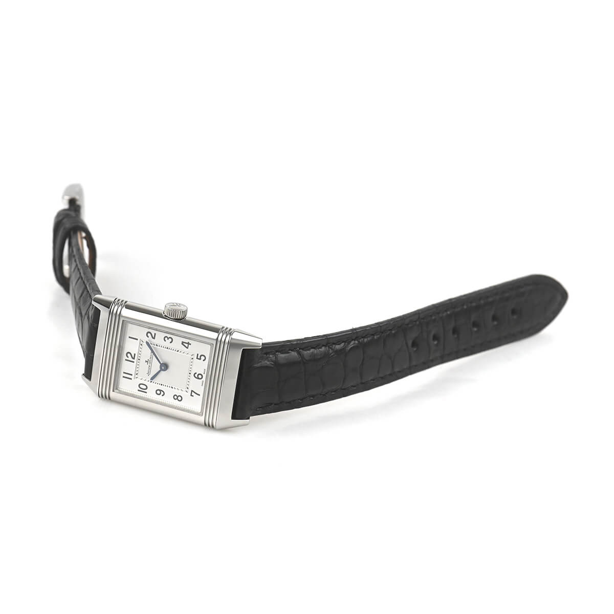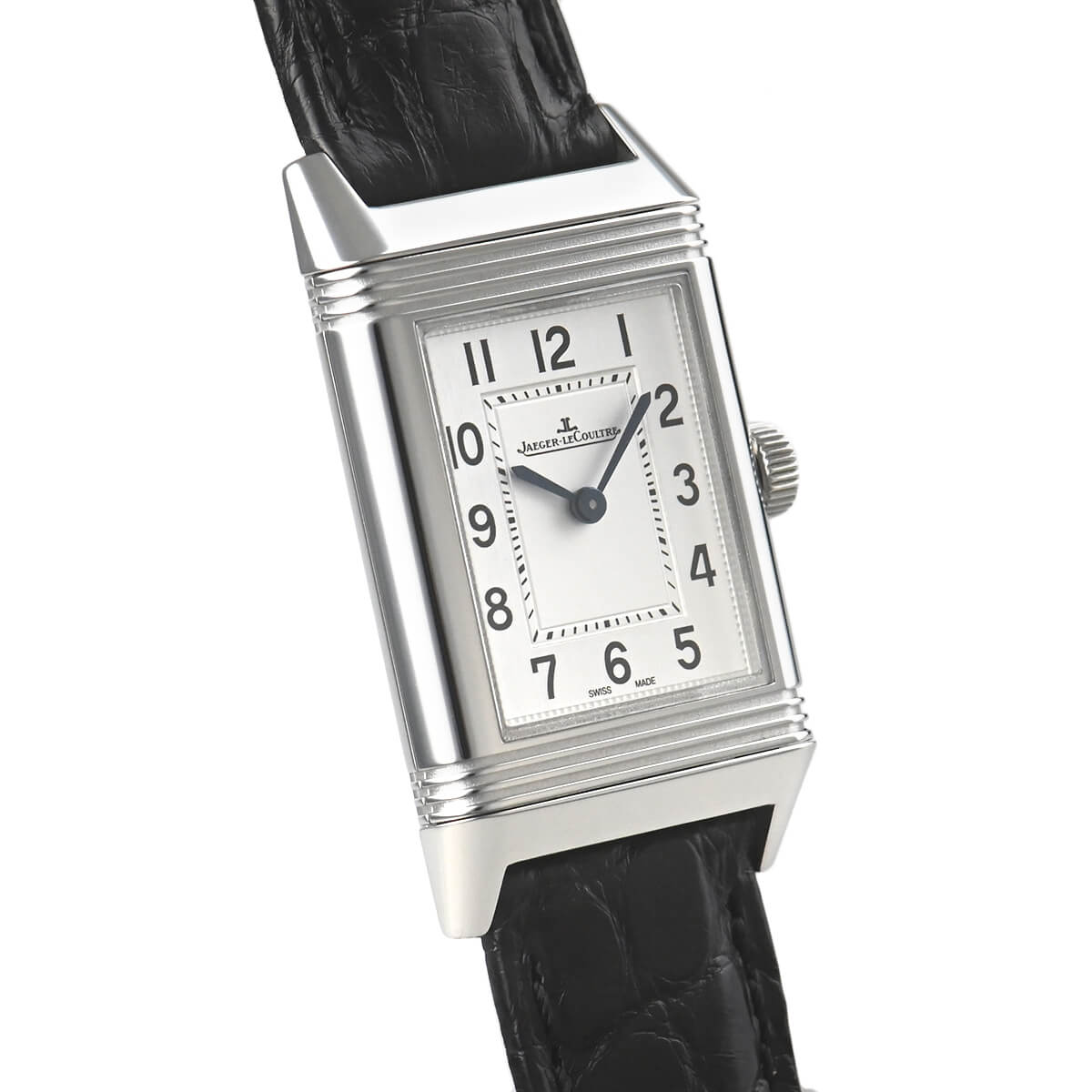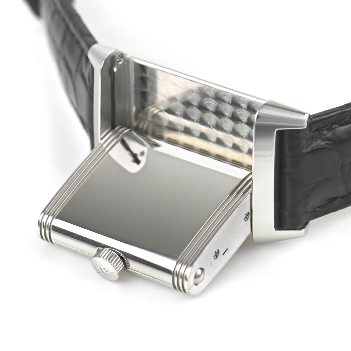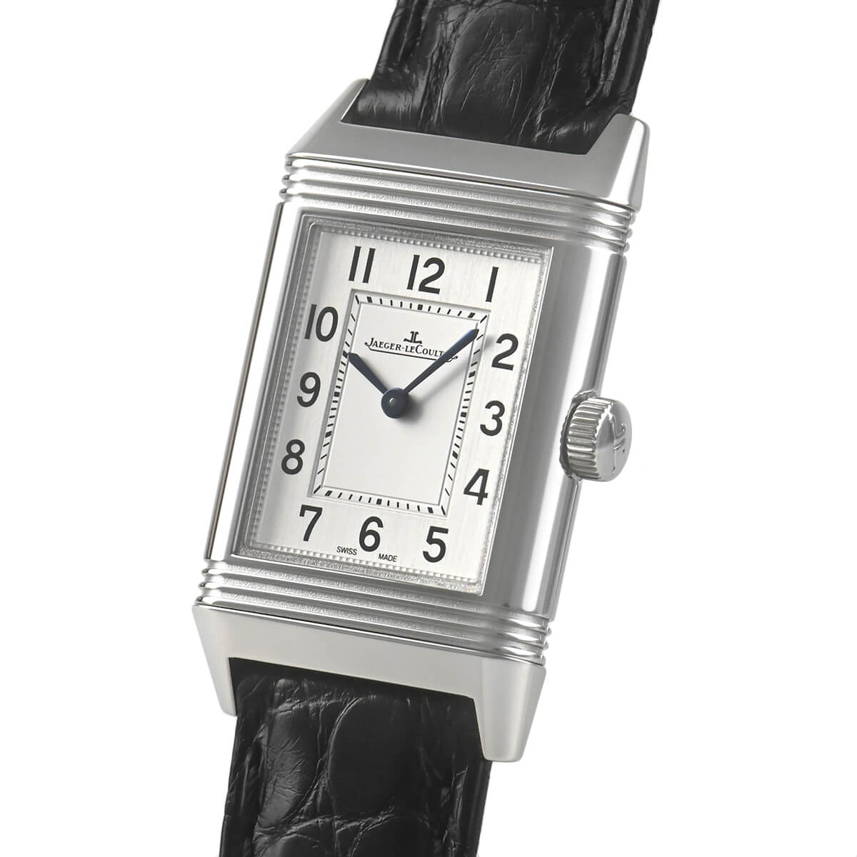 1930年代に誕生したレベルソはポロ競技中にガラスが割れてしまうのを防ぐためにケースを反転させ使用された時計です。こちらのレベルソクラシックスモールは、レディースモデルとなっており、35.78×21.00mmの小振りなケースには自社製クォーツ式ムーブメントのCal.657を搭載します。