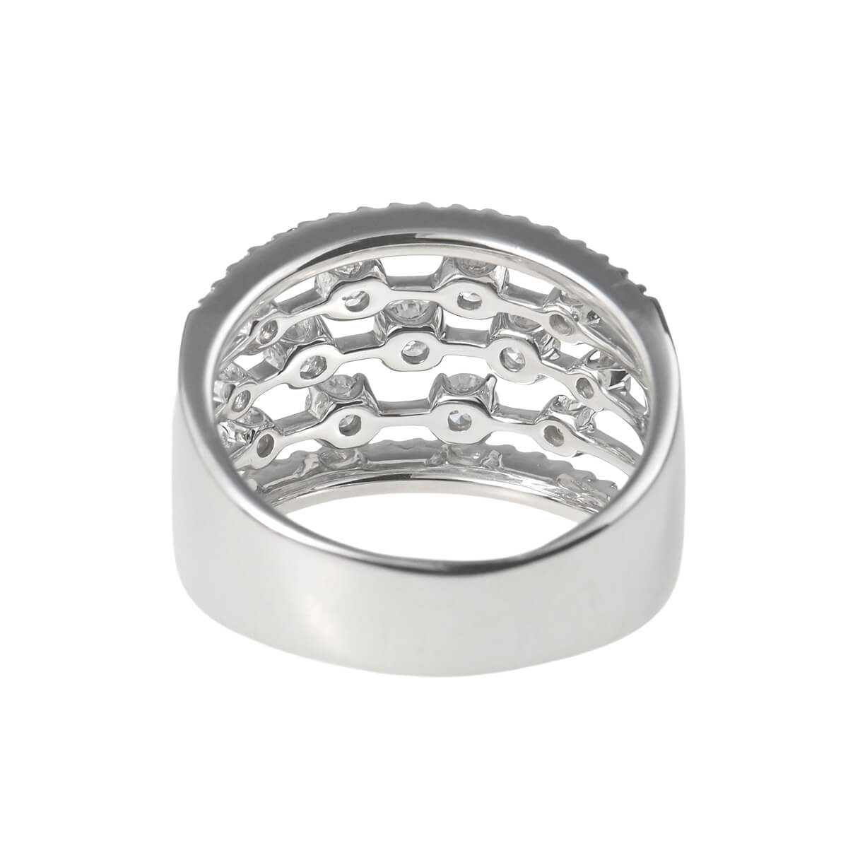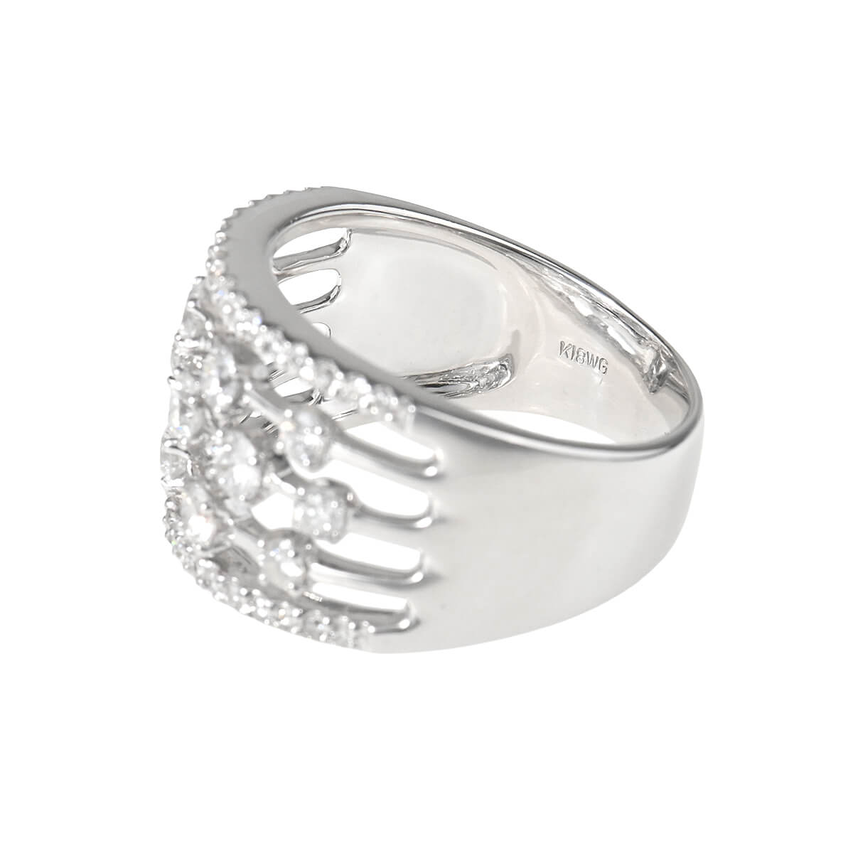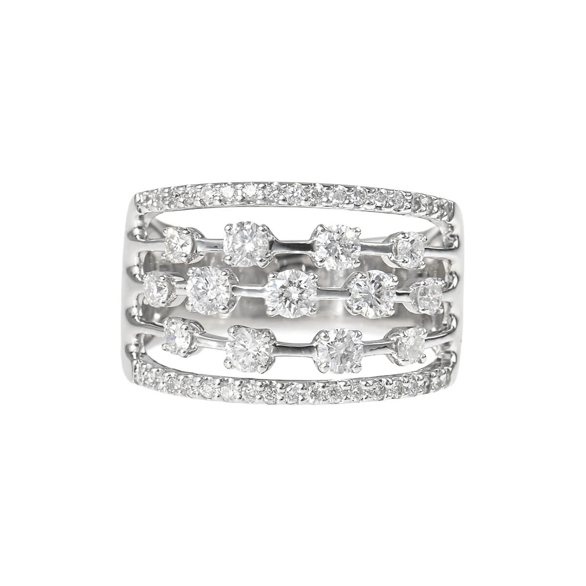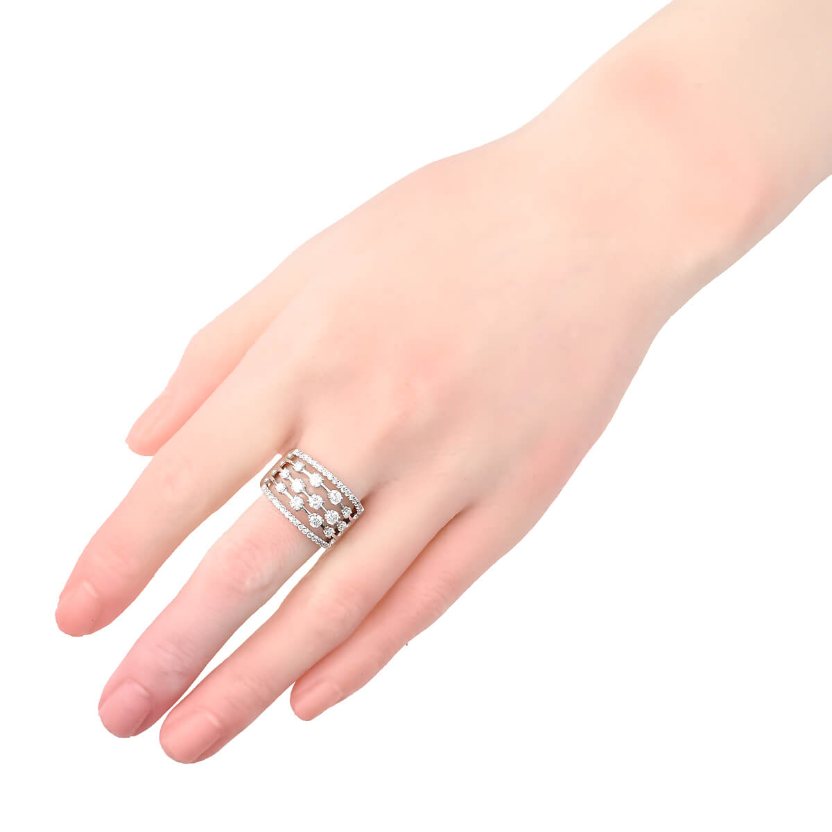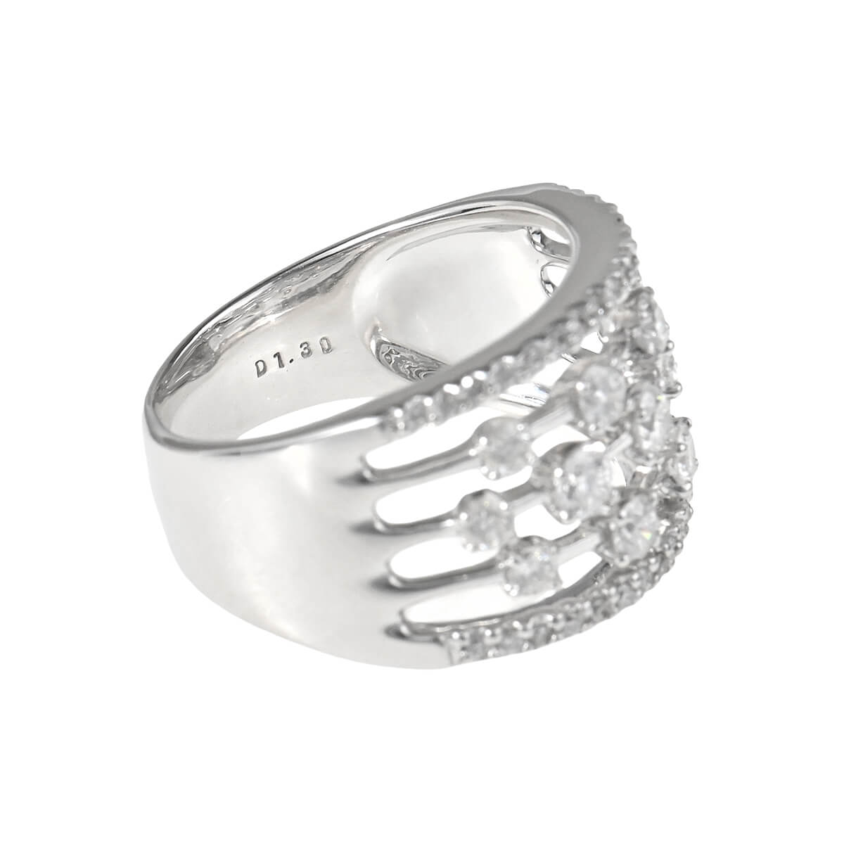 トータル1.30ctものダイヤモンドが贅沢に、美しくデザインされた、ホワイトゴールド製リングです。五線譜にならぶ音符のようにきらめくダイヤモンドをあしらったデザインは存在感がありながら、指先を繊細に、軽やかに印象づけます。あらゆる角度で光をとらえて、さりげない仕草にまで本物の輝きを添えてくれる、本物の美しさあふれる上質なダイヤモンドジュエリーです。