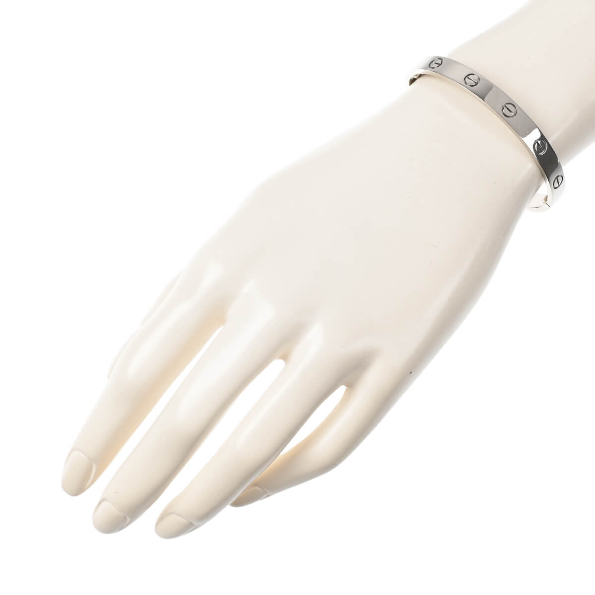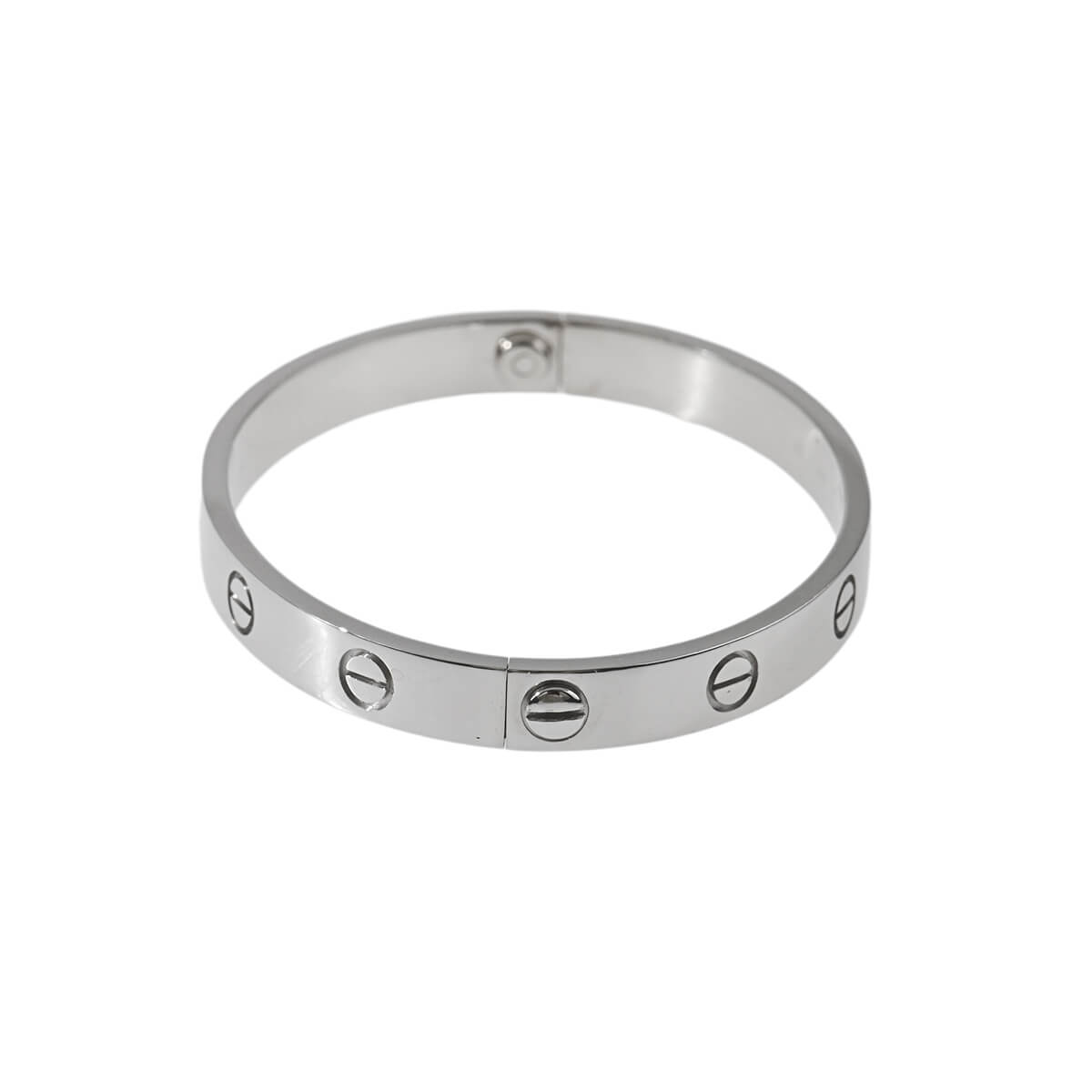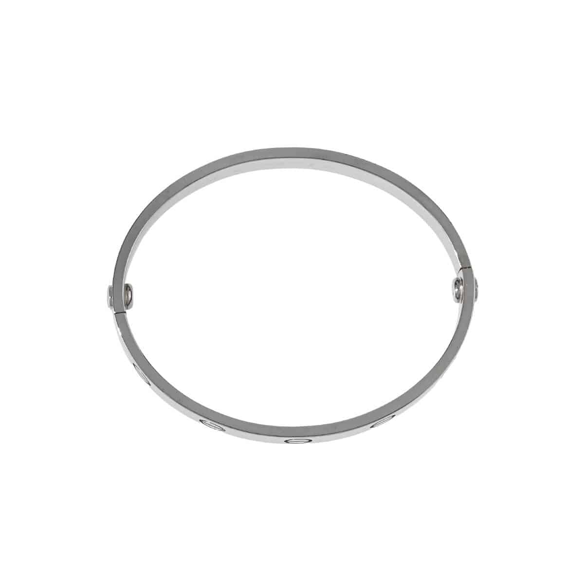 1970年代、『Cartier(カルティエ)』ニューヨークのアトリエで、イタリア出身のジュエリーデザイナー、アルド・チプロによってデザインされた「LOVE」ブレスレット。永遠に結ばれる“絆”のコレクションは、無駄のない端正なビス、完成されたシェイプ、その確固たるエレガンスがタイムレスな魅力を放ちます。端正なビスがデザインのアクセントになった、洗練されたフォルムが美しいホワイトゴールド製オーバルシェイプブレスレット。艶やかに磨かれたマテリアルの美しさが際立つブレスレットは、1本ですっきりと洗練された存在感を楽しむのはもちろん、地金をミックスしてレイヤリングするのも素敵です。