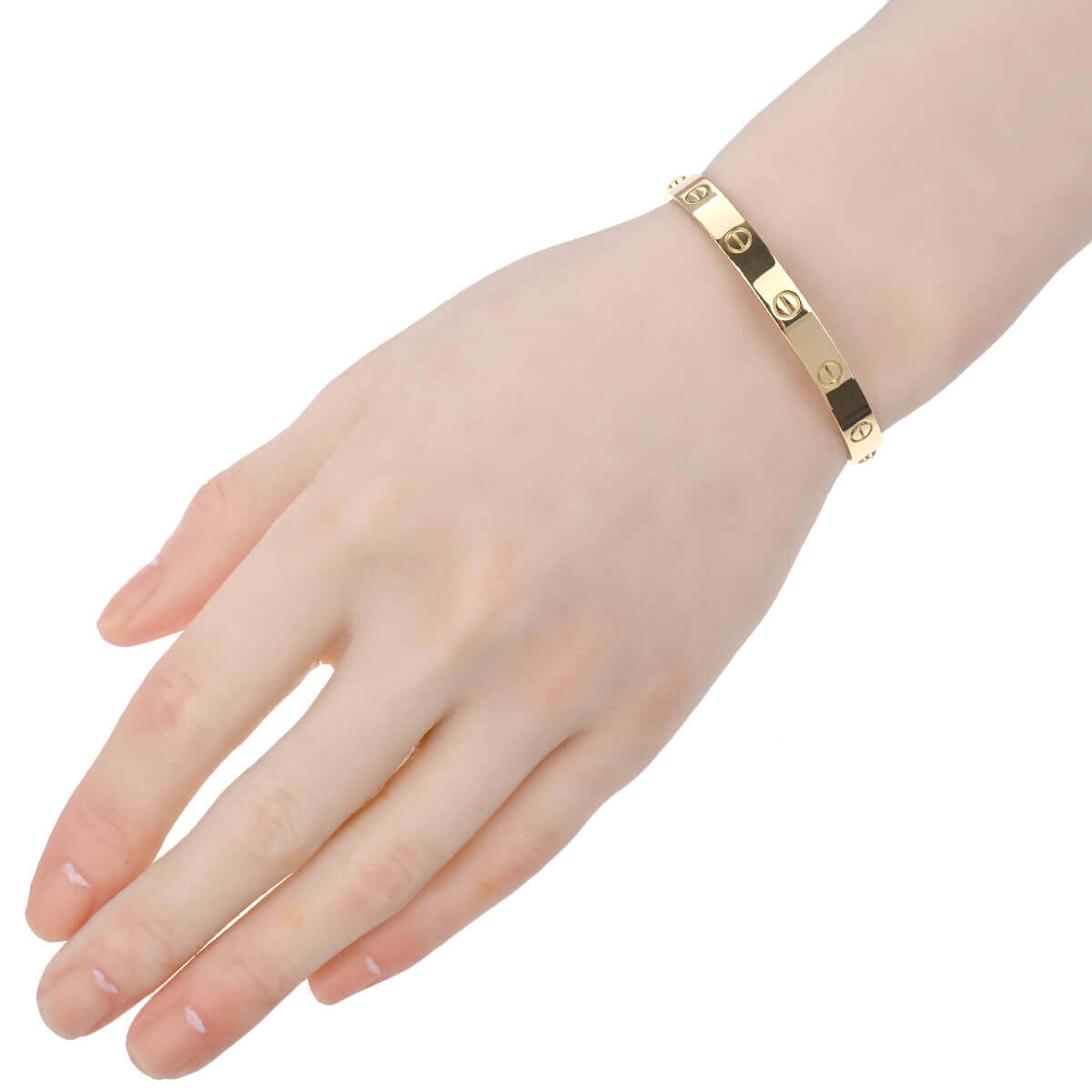 1970年代、『Cartier(カルティエ)』ニューヨークのアトリエで、イタリア出身のジュエリーデザイナー、アルド・チプロによってデザインされた「LOVE」ブレスレット。永遠に結ばれる“絆”のコレクションは、無駄のない端正なビス、完成されたシェイプ、その確固たるエレガンスがタイムレスな魅力を放ちます。端正なビスがデザインのアクセントになった、洗練されたフォルムが美しいイエローゴールド製オーバルシェイプブレスレット。艶やかに磨かれたマテリアルの美しさが際立つブレスレットは、1本ですっきりと洗練された存在感を楽しむのはもちろん、地金をミックスしてレイヤリングするのも素敵です。