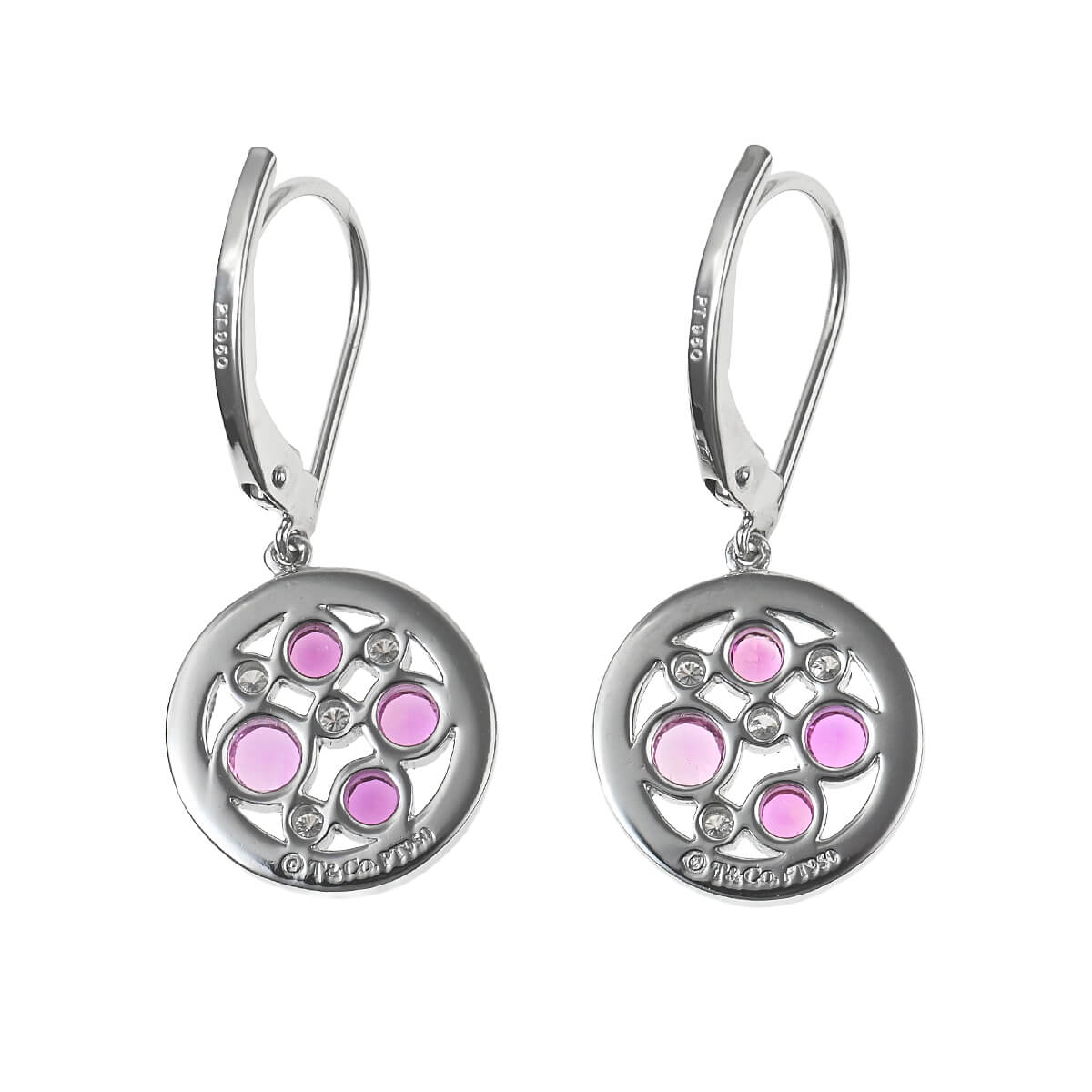 道路の舗装などでよく用いられる石材、“玉石”を意味する「コブルストーン」。『TIFFANY&Co.(ティファニー)』「コブルストーン」は、その玉石を使って舗装された道、マンハッタンを走る“コブルストーンストリート”からインスパイアされたジュエリーコレクションです。様々なサイズのティファニーダイヤモンドとピンクサファイアが、ミルグレインで囲まれたサークルに敷き詰められたモチーフが揺れる、プラチナ製ドロップピアス。可憐な魅力を放つピンクサファイアの美しい色彩が、ティファニーダイヤモンドの繊細な煌めきをさらに惹きたてています。ティファニーらしく、永遠にモダンで優美なデザインが日常を彩るピアスです。