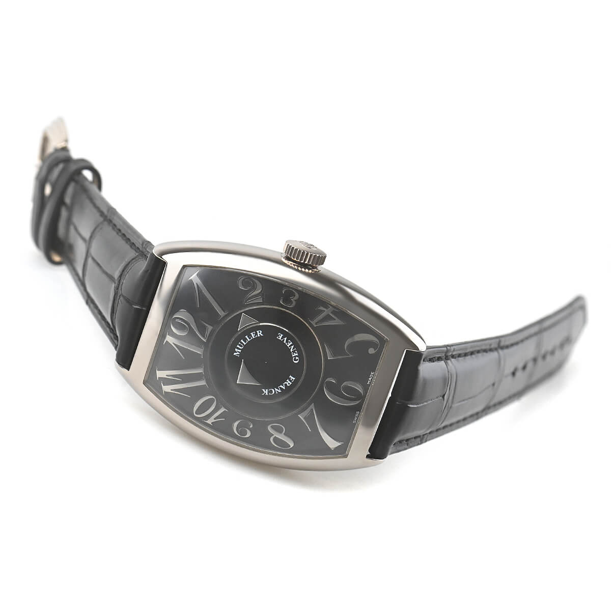 アールデコ時代の優雅なケースデザインと数字が現代人の琴線に触れ、今やポピュラーなデザインと認識されているフランクミュラーのトノーケース。こちらは6850ケースに針の代わりに2枚のディスクが時刻を表示するユニークな機構を収めた「トノウカーベックスダブルミステリー」です。