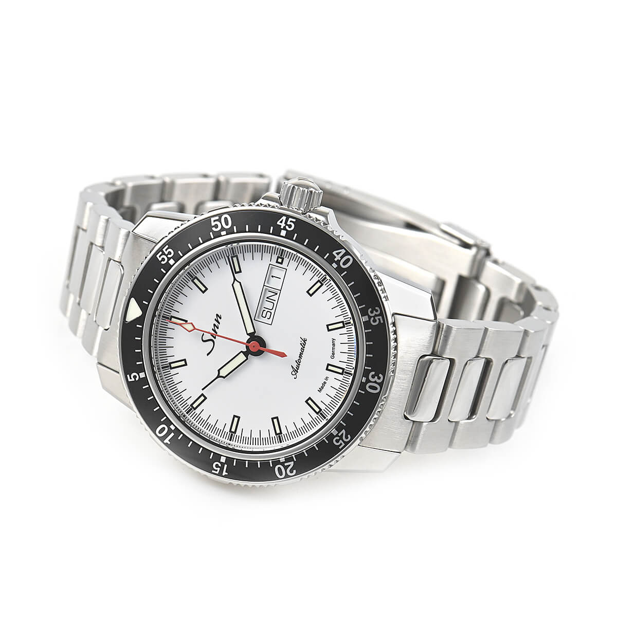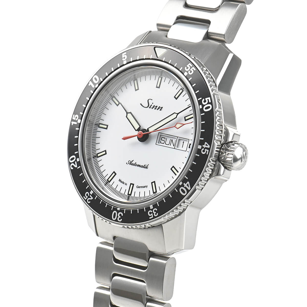 60年代から続くジンのパイロットウォッチの基本精神に基づいて製作された「104.ST.SA」。両方向回転式のベゼルは、ジン独自の装着方法で取り付けられているため、外れることがほぼありません。