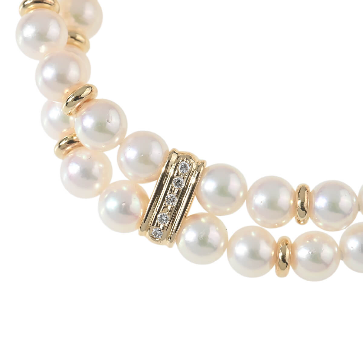 パール&ダイヤモンドジュエリーの未知なる世界を切り拓き、美しくそして大胆に、比類なき美意識をもって、身に纏うアートのようなモダンアートクリエイションを追求する日本発のラグジュアリージュエラー『TASAKI(タサキ)』。世界に誇る基準のハイクオリティ、繊細かつ革新的なクリエイティビティ、そして最高の素材を最高美のジュエリーへと昇華させる、磨き抜かれたクラフツマンシップをもつ、日本を代表するブランドのひとつです。美しく、まろやかな光を放つちいさなパールが2重に連なるブレスレット。連なるパールの合間にあしらわれた艶やかなゴールドパールとダイヤモンドのパーツが、デザインのアクセントになっています。ドレスアップにはもちろん、Tシャツやデニムでカジュアルにコーディネートして、パールジュエリーならではの品と余裕を楽しむのも。優しく美しく光るパールときらめくダイヤモンドのコントラストが、手元をエレガントで華やかに、品よく印象づけます。