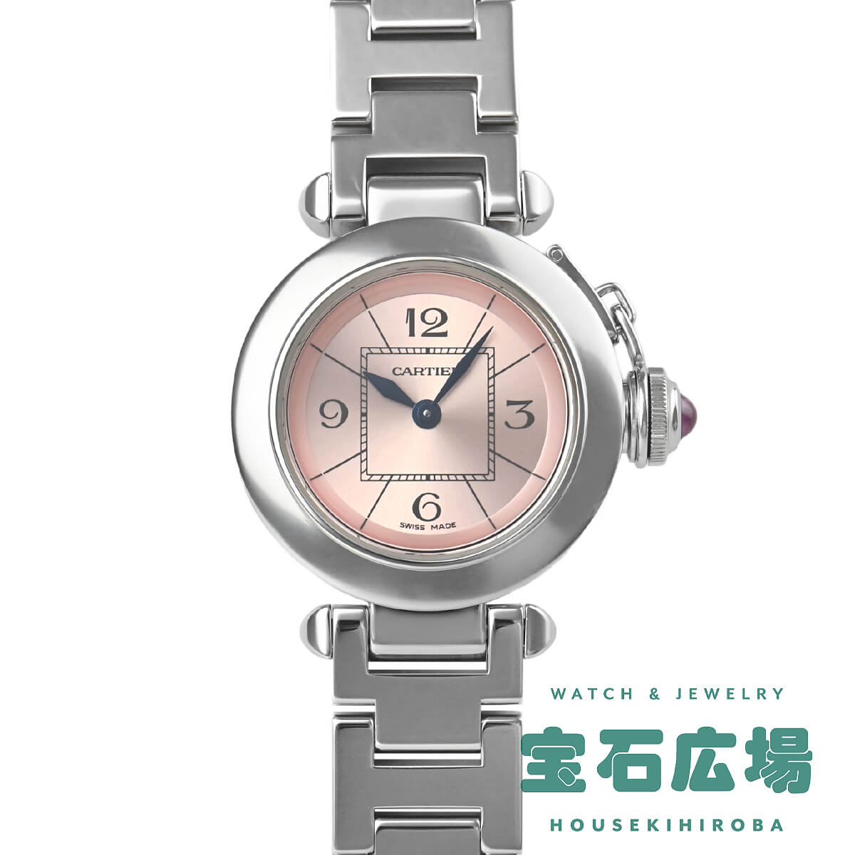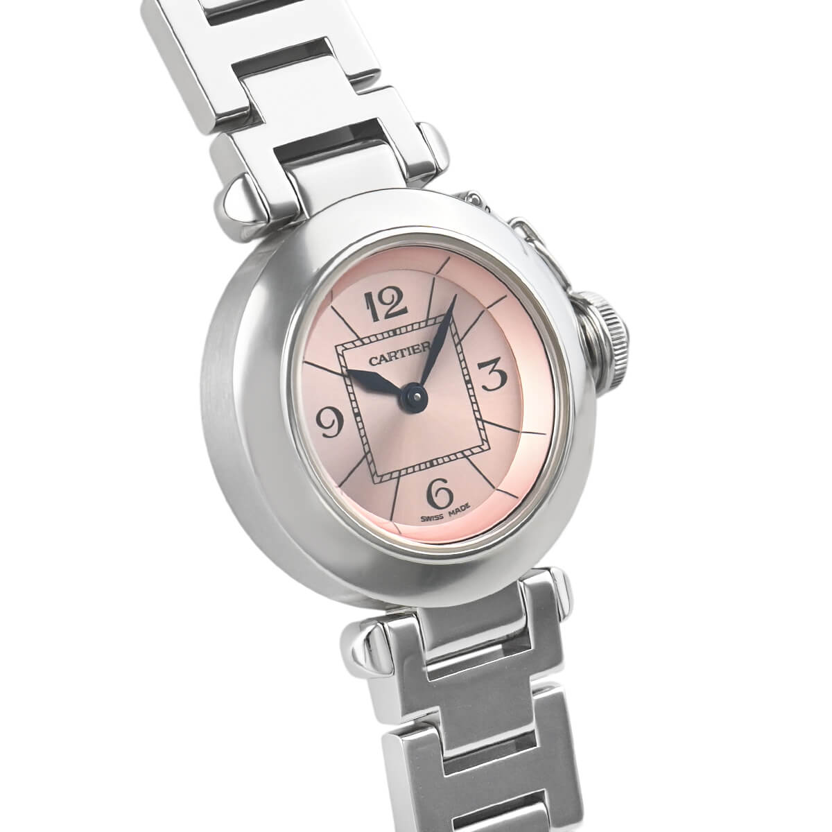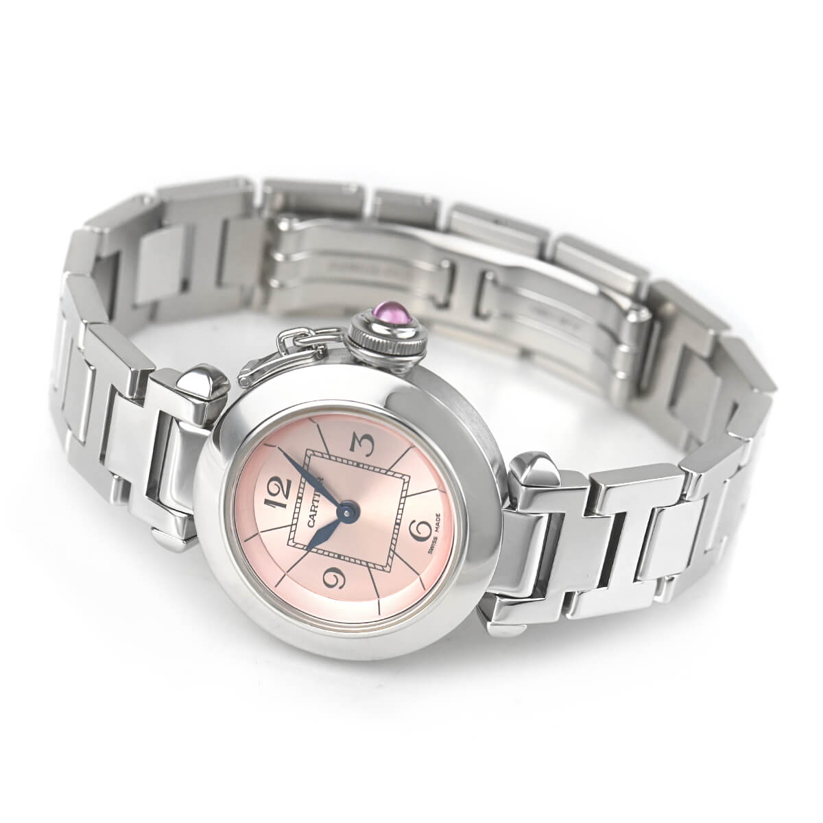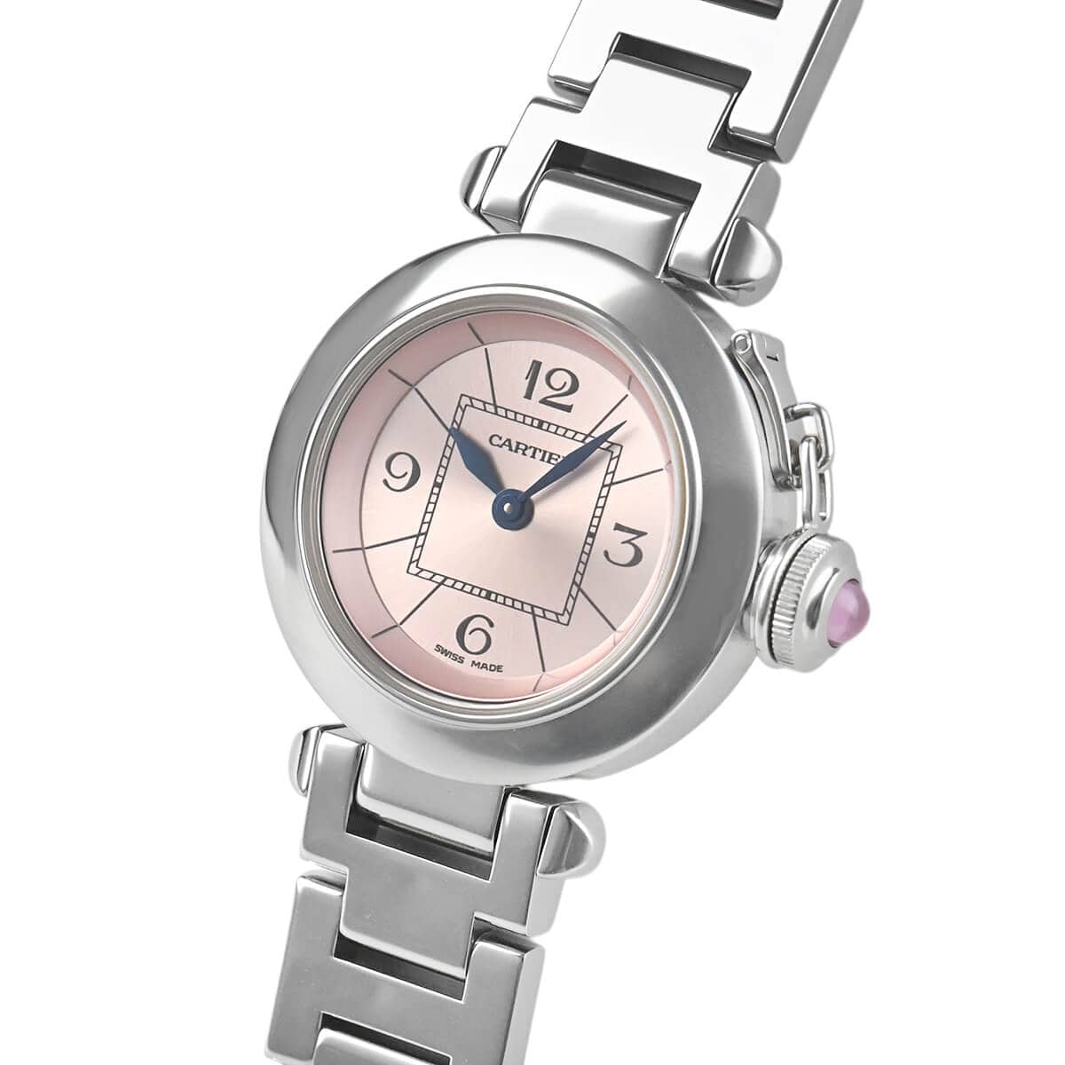 パシャコレクションの中で一番小さい27mmサイズの「ミス パシャ」。こちらはフェミニンなピンクダイアルです。