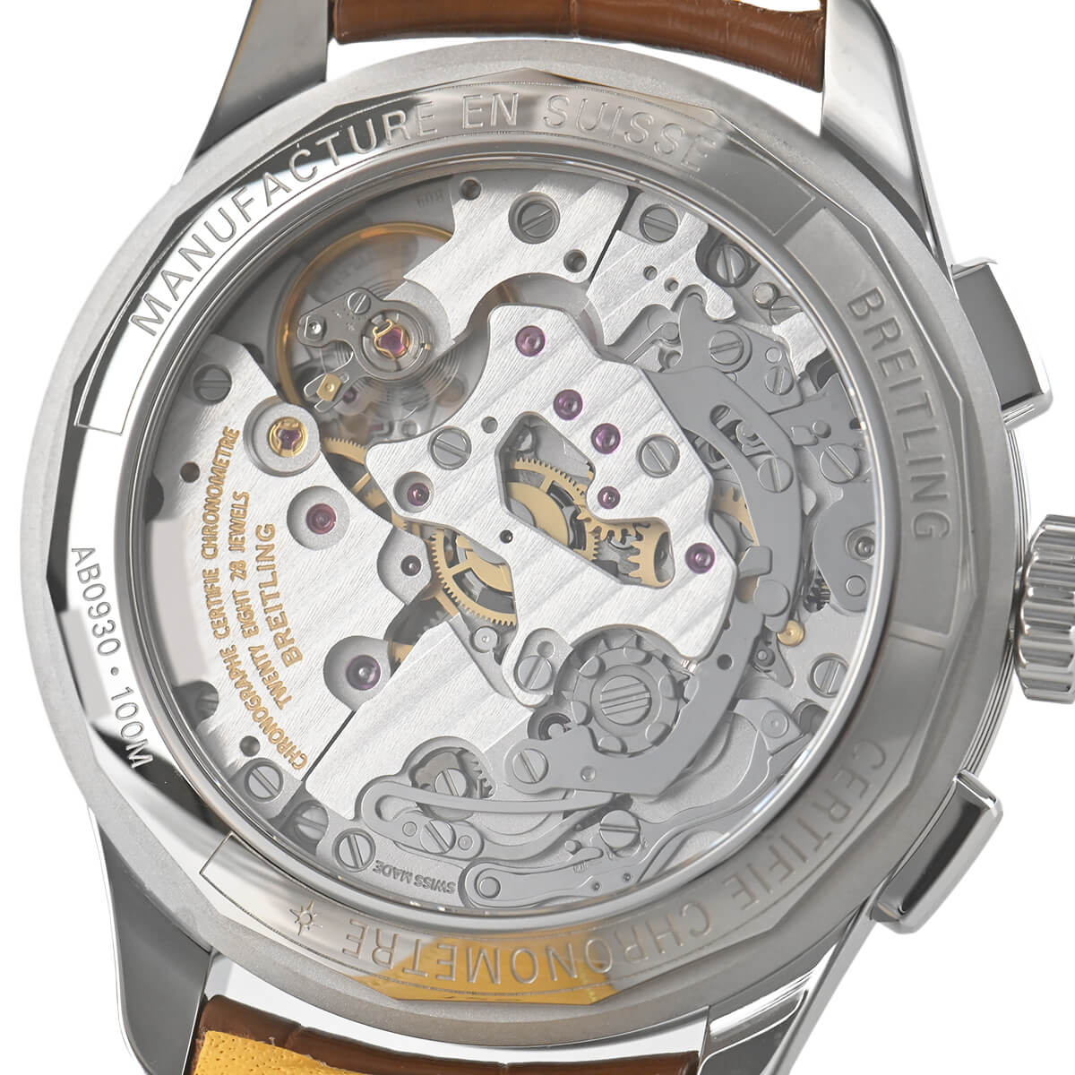 オリジナルモデルにならい角型プッシュボタンを採用し、文字盤の外周にはタキメータースケールを設けるなど、かつての古き良きデザインを周到しリデザインさせるのはさすがブライトリングですね。