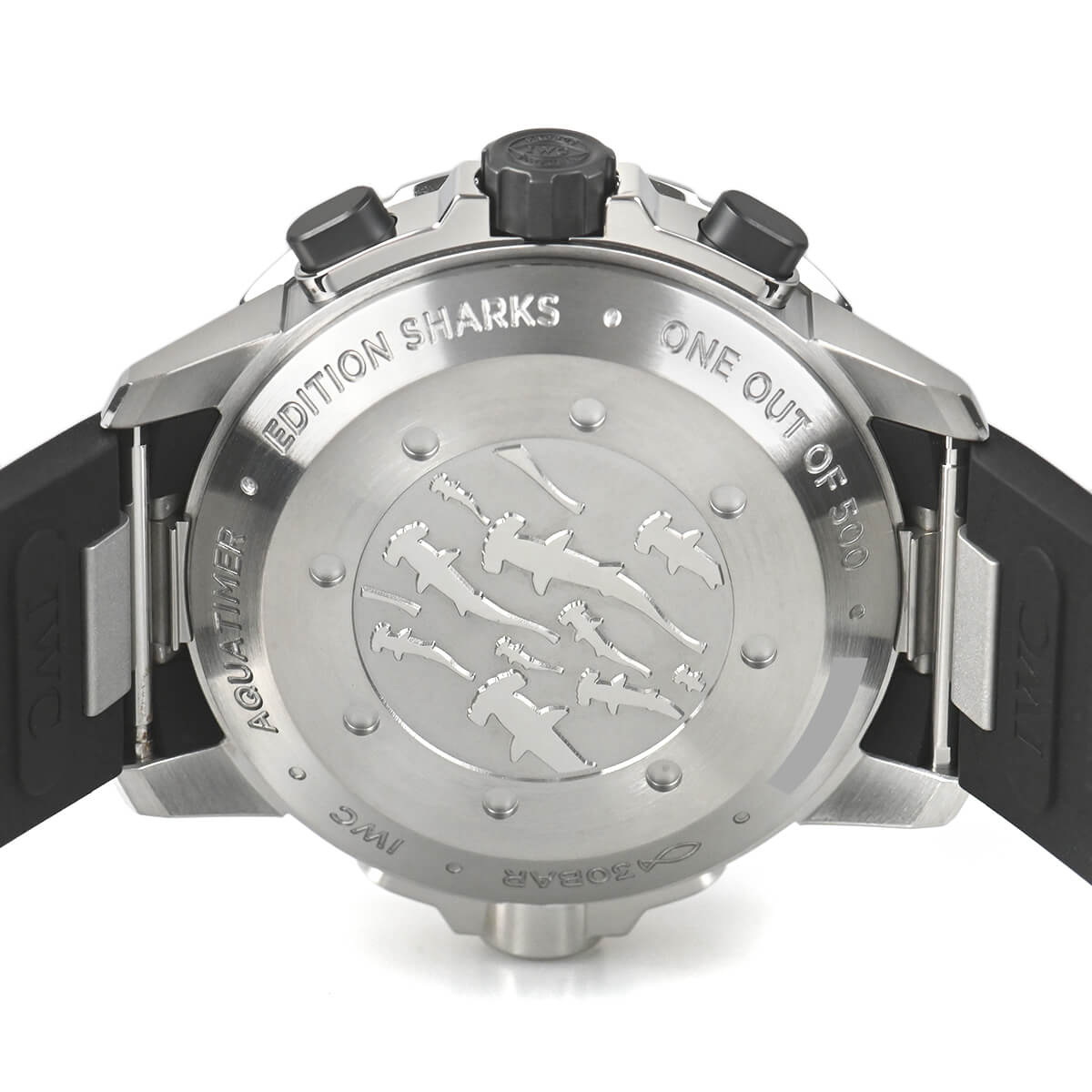 2017年発表の世界500本の限定モデル「アクアタイマークロノグラフ シャーク」。IWCと出版会社のタッシェンが米国出身の有名な写真家のマイケル・ミュラーとタッグを組み製作されたのがこちらのモデルです。
