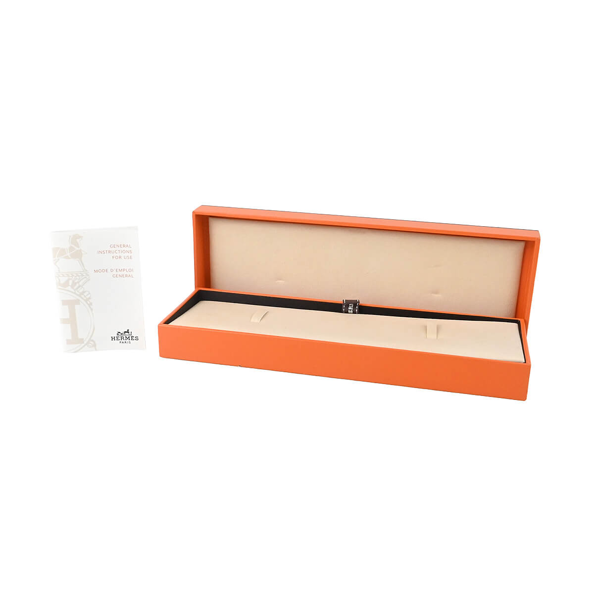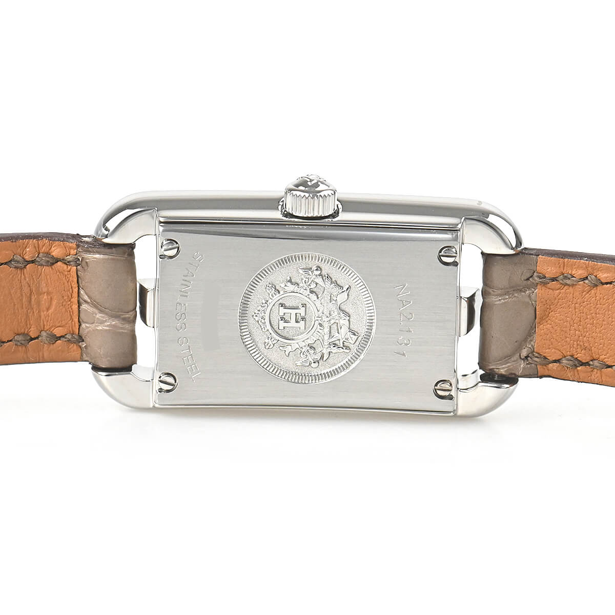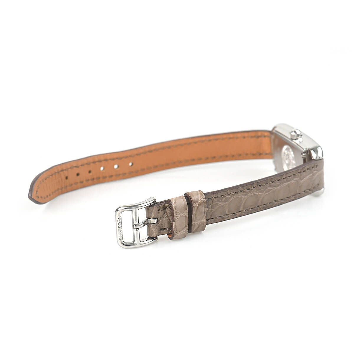 エルメスのアイコニックジュエリー「シェーヌ・ダンクル」をモチーフにレクタングルケースに進化させた「ナンタケット」。こちらは、ケースから文字盤にかけて雪や花が舞い落ちる様を表現した「ジュテ・ドゥ・ディアマン」。