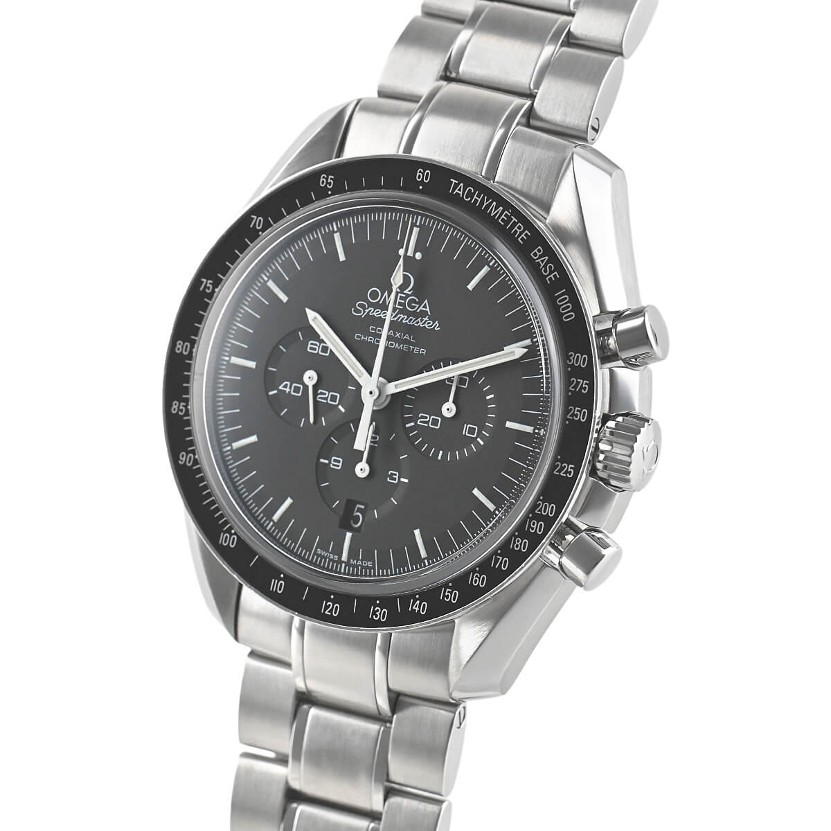 スピードマスター史上最大級のケースサイズを持つスピードマスターコーアクシャルクロノメーター「311.30.44.50.01.002」。ムーブメントにはフレデリック・ピゲ社と共同開発したコーアクシャル自動巻キャリバーCal.3313を搭載しています。