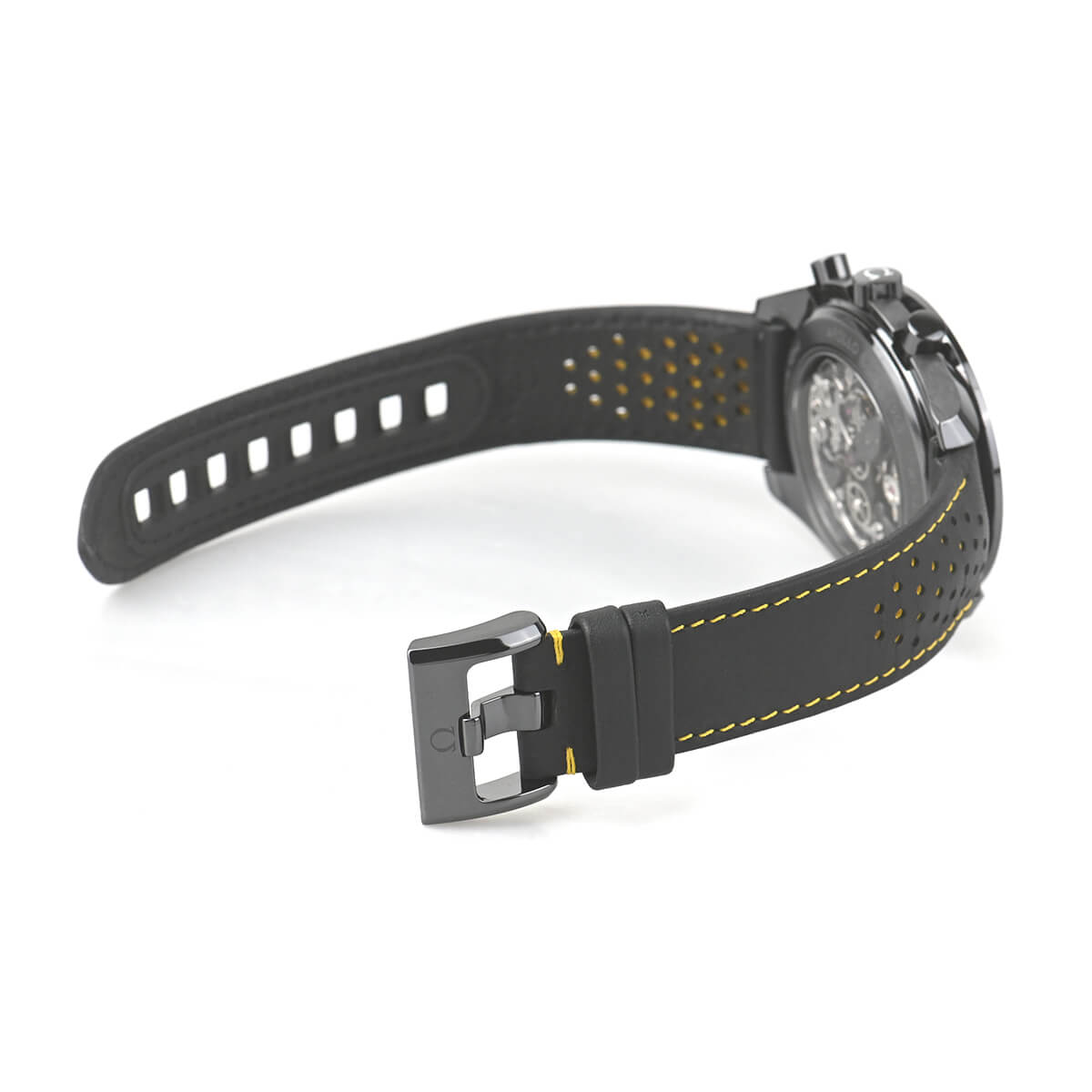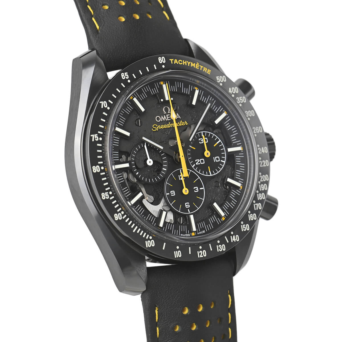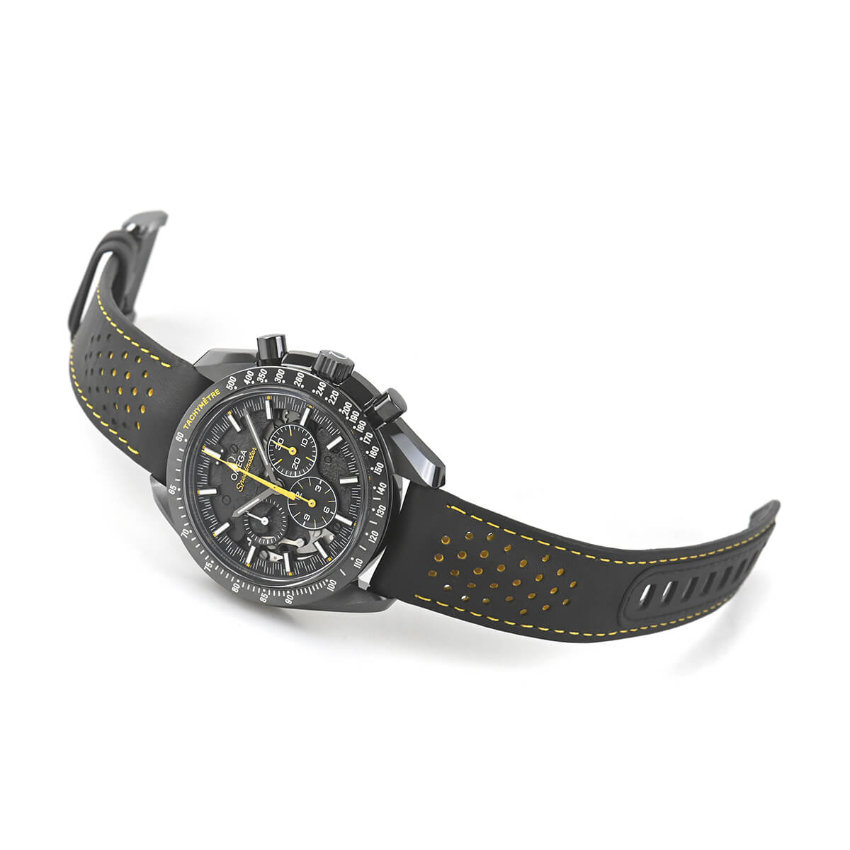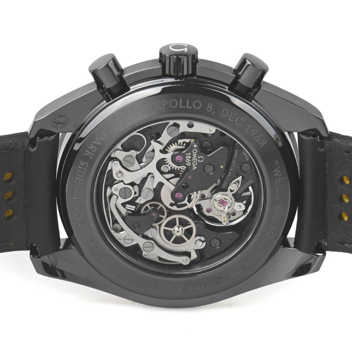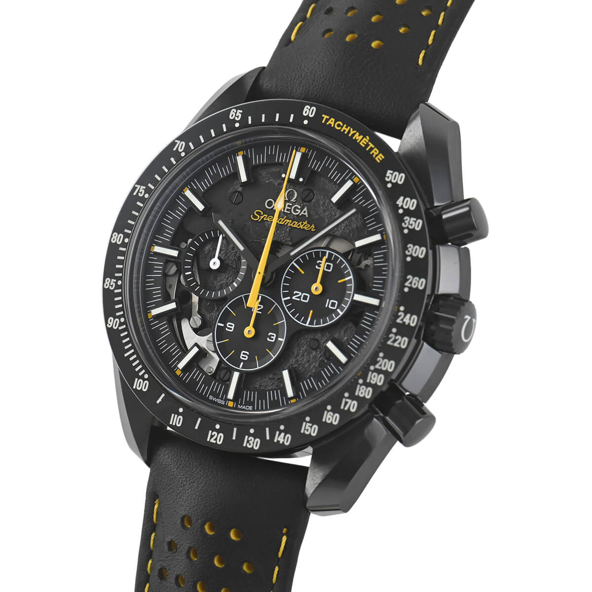 ファイン・セラミックスの外装をかぶせ「真っ黒のスピードマスター」を作り上げたスピードマスター ムーンウォッチ「ダークサイド・オブ・ムーン」。強度が必要なケースの中胴部分はメタルで製作、かぶせたセラミックスを焼成してから加工するという手のかかった一本です。