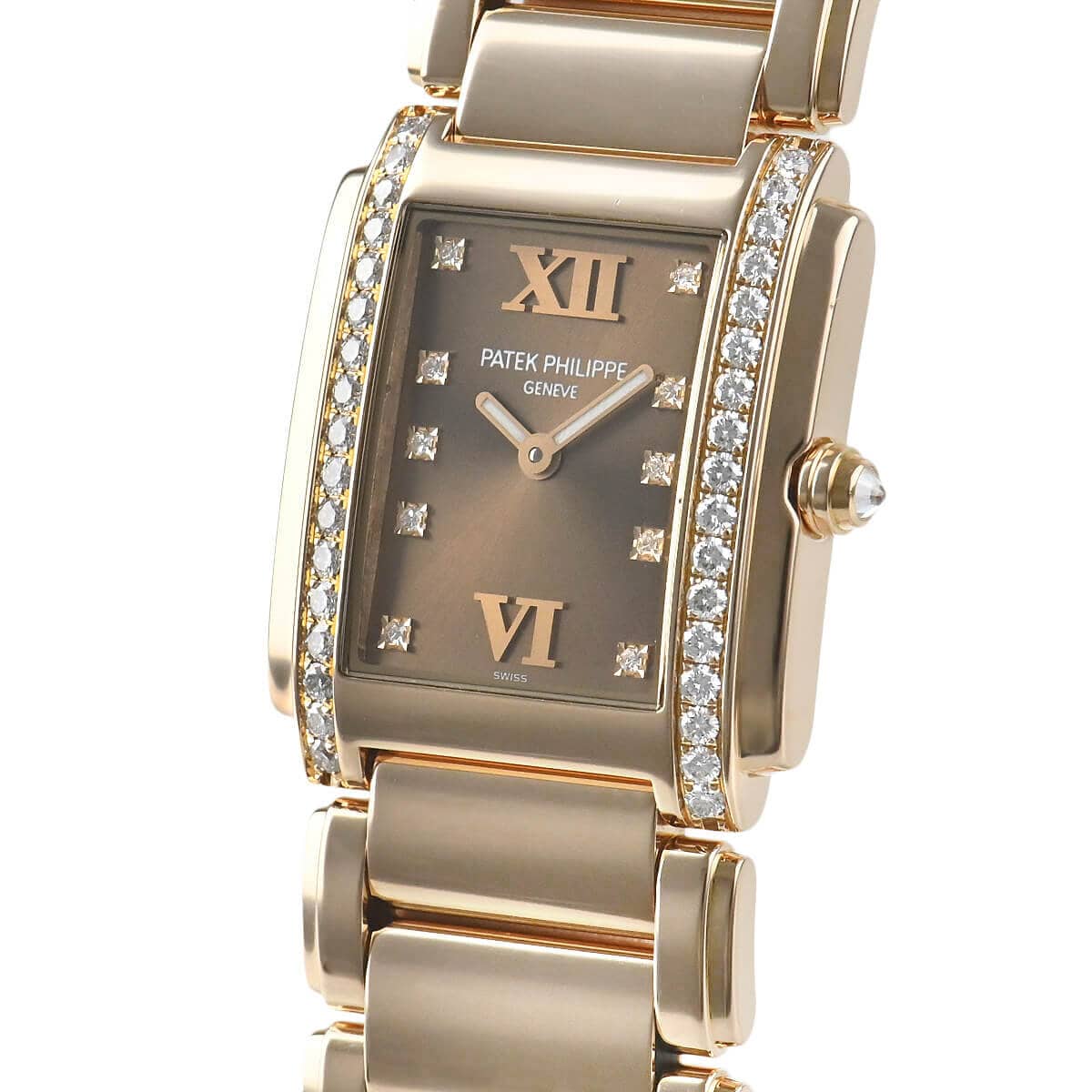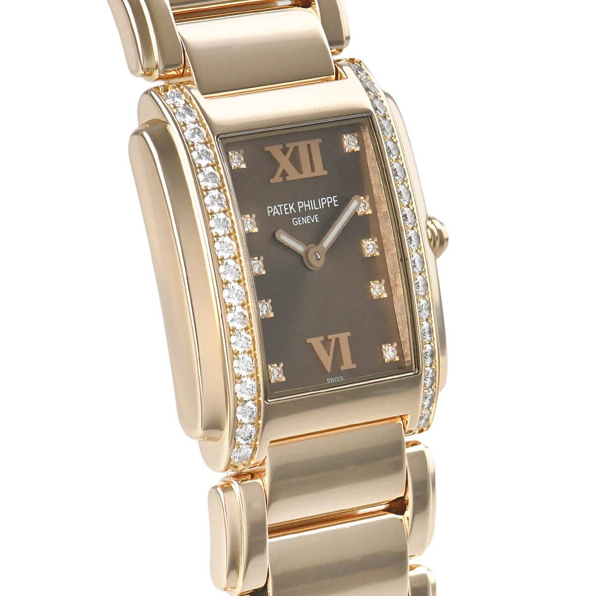 メンズとレディースのデザインが共通することの多いパテック フィリップの中にあって、最もフェミニンなモデルと言えるかもしれません。