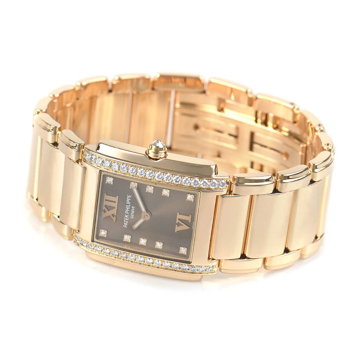 パテック フィリップの人気モデル「Twenty-4」。ジュエリーのブレスレットのように時計とブレスが一体となったこのデザインは、レディースモデルのみの展開となります。