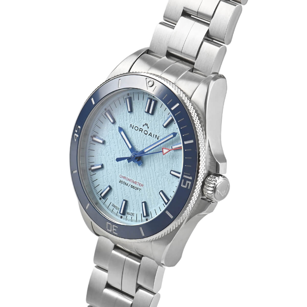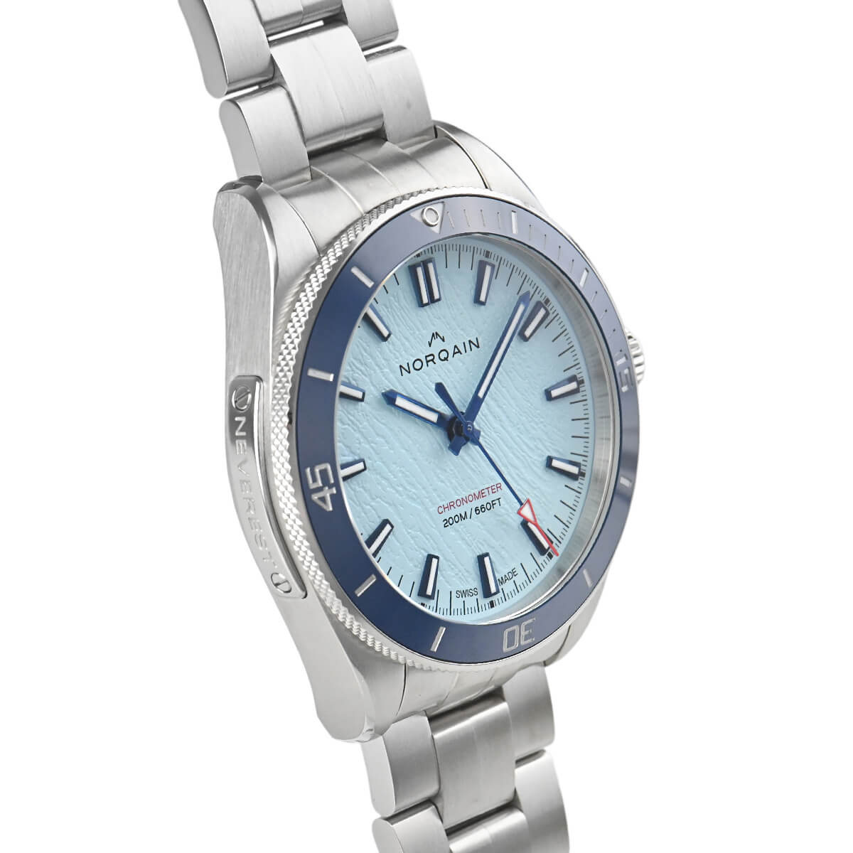 注目の新進ブランド、ノルケインの「アドベンチャー ネベレスト グレーシャー40」が入荷いたしました。世界限定300本の限定モデルで、グレーシャー文字盤の色はエベレスト登頂の最も危険なステージであるクンブ氷瀑をイメージしています。