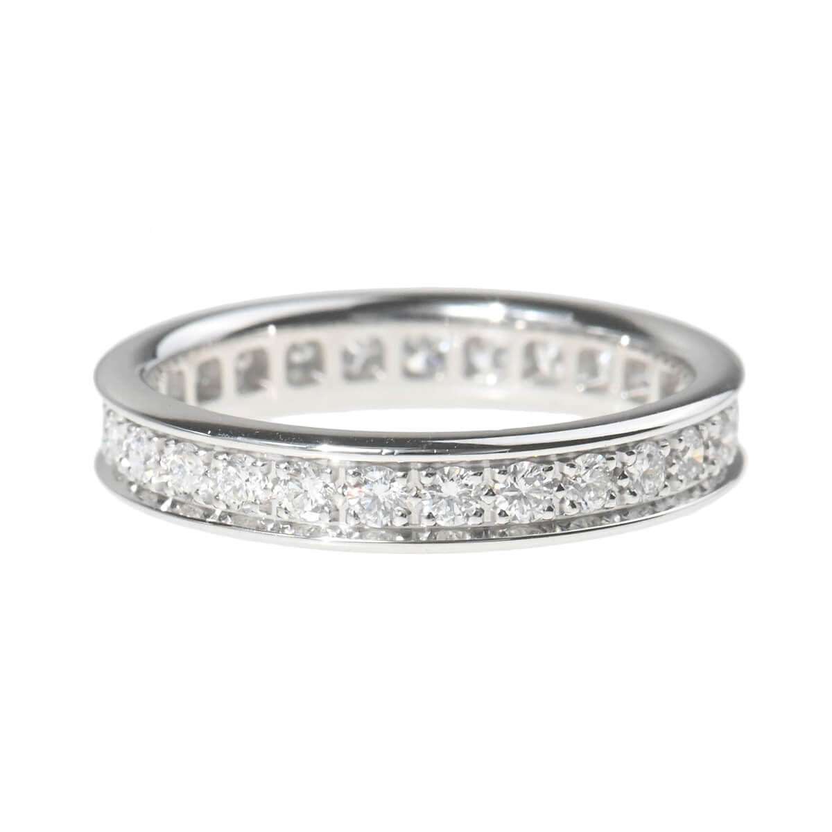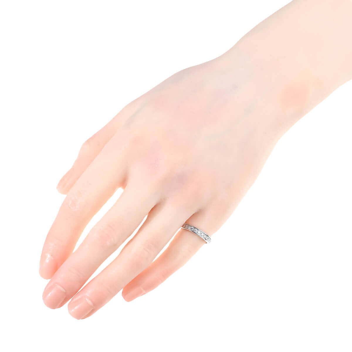 ルイ=フランソワ・カルティエが1847年にフランス・パリに創業した、老舗高級宝飾メゾン『Cartier(カルティエ)』。世界中の王族が愛用する格式高いブランドであり、英国王エドワード7世に“Jeweller of kings,king of jewellers (宝石商の王であるがゆえに、王の宝石商)”とまで評価された、現在では世界5大ジュエラーのひとつでもある、世界でもっとも有名なブランドのひとつです。繊細なプロングで留められたダイヤモンドの上下を艶めくマテリアルでレールのようにはさんだ、シンプルモダンなデザインのホワイトゴールド製エタニティリング。メゾンが厳選したこのうえなく美しいダイヤモンドが描く輝きのラインが、どの角度からも光をとらえ指先で繊細に煌きます。どんなシーンやスタイリングにもマッチする、オーセンティックなダイヤモンドリングです。