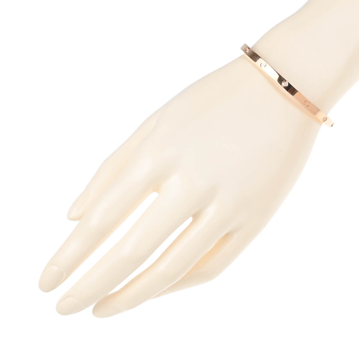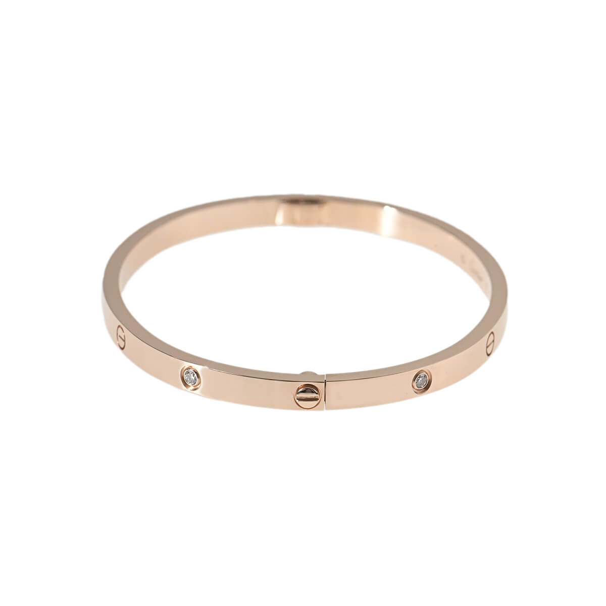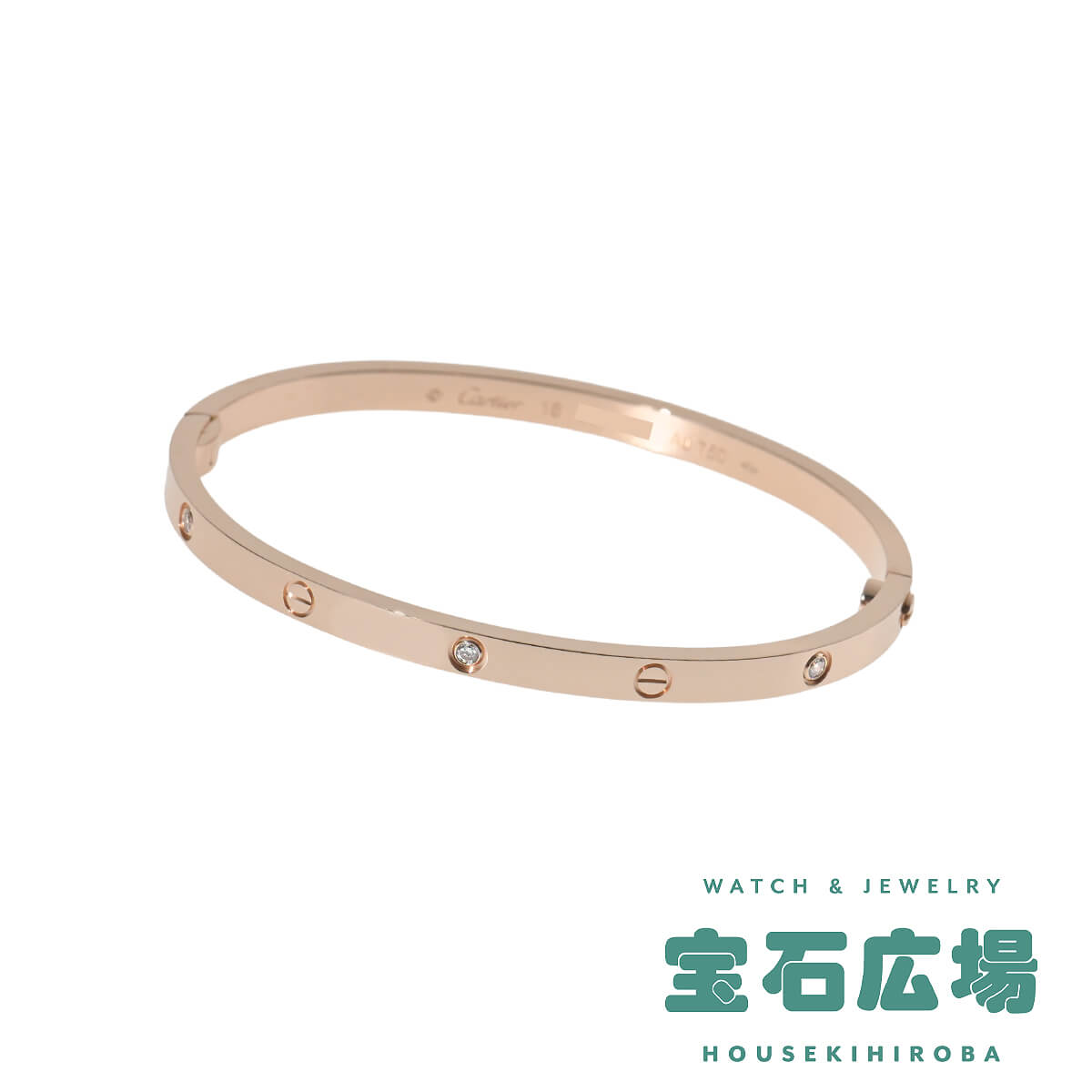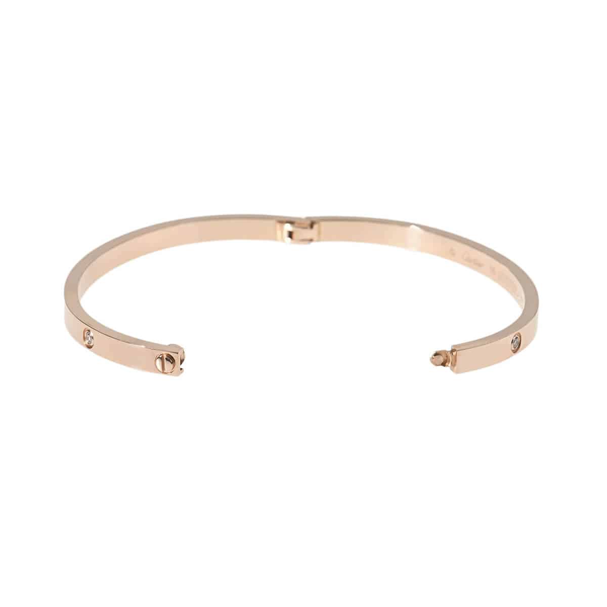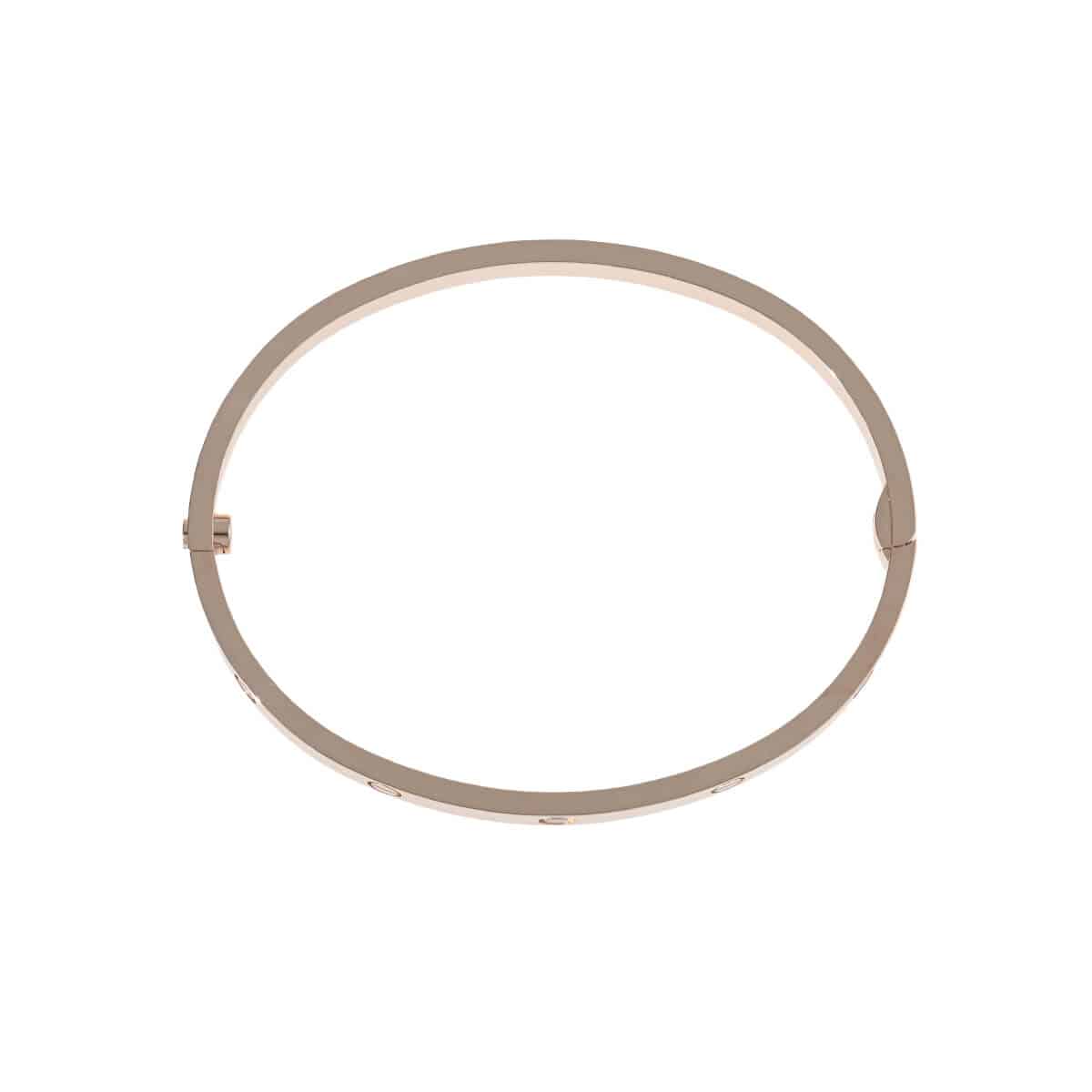 1970年代、『Cartier(カルティエ)』ニューヨークのアトリエで、イタリア出身のジュエリーデザイナー、アルド・チプロによってデザインされた「LOVE」ブレスレット。永遠に結ばれる“絆”のコレクションは、無駄のない端正なビス、完成されたシェイプ、その確固たるエレガンスがタイムレスな魅力を放ちます。端正なビスがデザインのアクセントになった洗練された美しいフォルムのブレスレットに、6粒のきらめくダイヤモンドがあしらわれたスモールサイズのピンクゴールド製オーバルシェイプブレスレット。艶やかに磨かれたマテリアルの美しさが際立つブレスレットは、1本ですっきりと洗練された存在感を楽しむのはもちろん、地金をミックスしてレイヤードするのもお洒落。本体から外れないビスを1か所、専用ドライバーで90度回すとロックが外れるこのブレスは、ぐっと着脱しやすくなったのも魅力のひとつです。