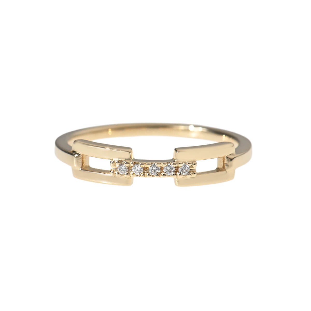 1946年に横浜で創業以来、時代が動き、トレンドがめまぐるしく変わっても、常に美しくありたいと願う人に寄り添い、笑顔を届け、時を超えて愛されてきたドメスティックブランド『STAR JEWELRY(スタージュエリー)』。創業当時、日本人女性には馴染みのなかったピアスを国内で初めて本格的に扱っていたことで人気を博したスタージュエリーは、現在でも洗練された日常のモードとスタイリッシュなコーディネートを提案し続けています。ふたつのオープンワークスクエアをダイヤモンドラインで繋いだ、イエローゴールド製リング。さりげなく繊細でありながら印象的なモチーフが、指先を品よく飾ります。デイリーに本物の輝きを楽しめる、コストパフォーマンスの高さも魅力の上質なダイヤモンドジュエリーです。