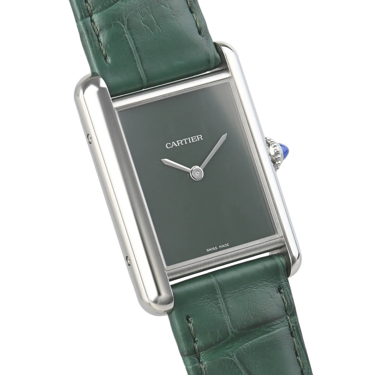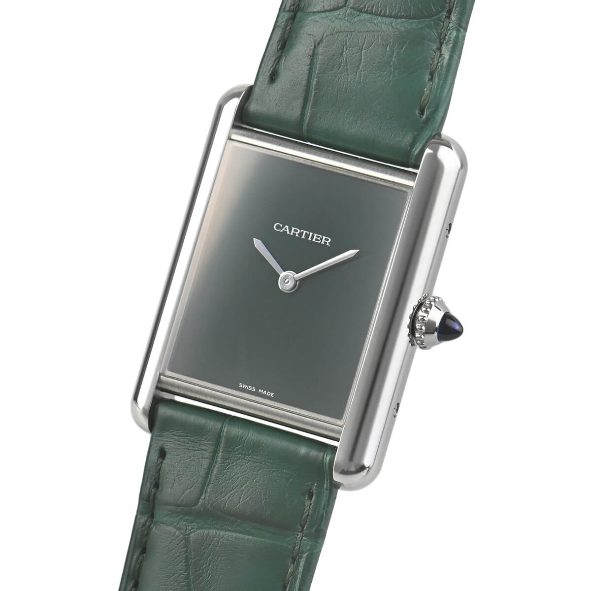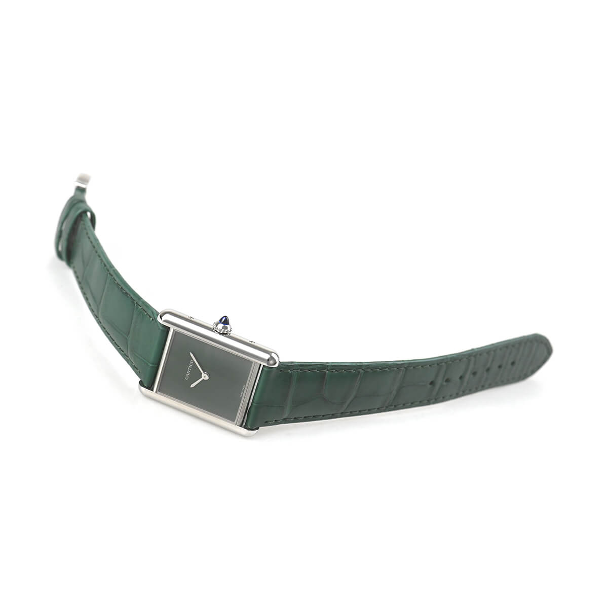 そんな伝説的なモデル「タンク」から、カルティエウォッチの特徴であるローマインデックスと四角のレイルウェイ分目盛を無くした「タンク マスト」です。