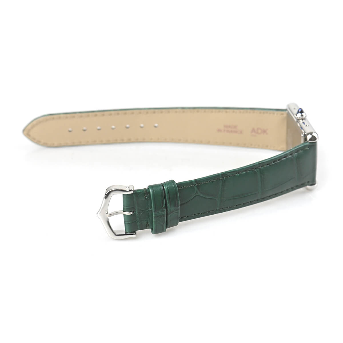 ベルトと文字盤をグリーンカラーで統一し、文字盤には針とメーカーロゴのみの斬新なモデルです。