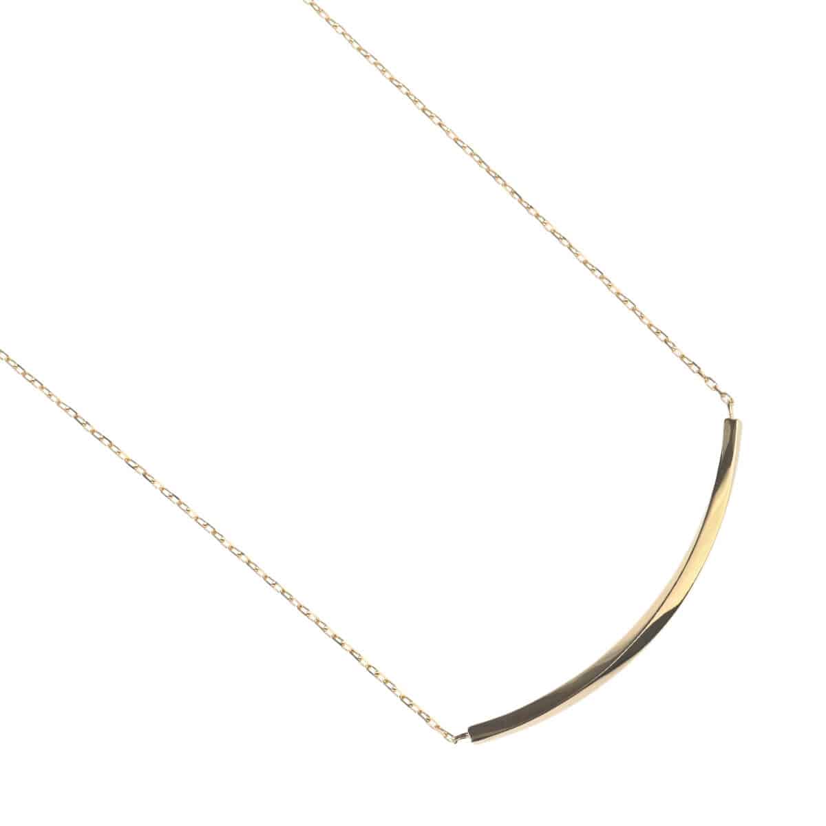 ツイストしながら美しいカーブを描く、艶やかに磨かれたゴールドバーを繊細なチェーンにあしらったイエローゴールド製ペンダント。程よい存在感と華やかさをスタイリングに添える、トレンド感もあるゴールドジュエリーはギフトにも。シンプルながらさりげない個性も感じられる、コストパフォーマンスの高さも魅力のゴールドジュエリーです。
