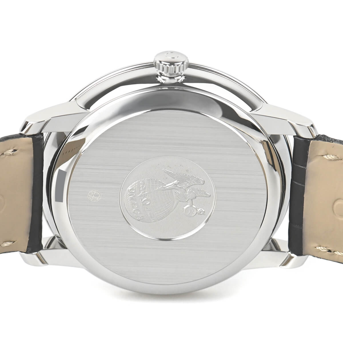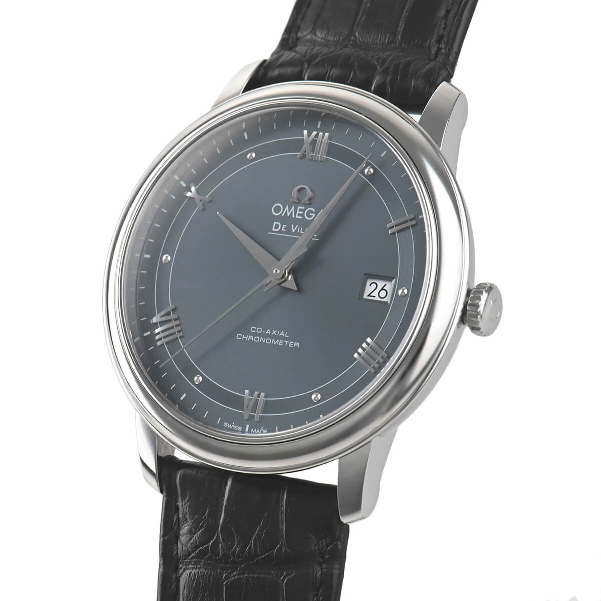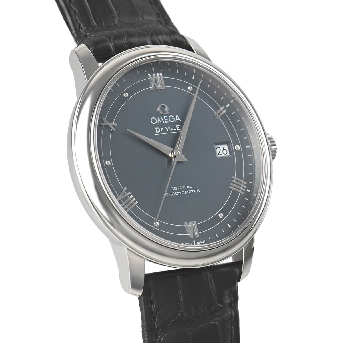 プレーンでオーソドックスなデザインの「デ・ヴィル プレステージ」。直径39.5mmのケースには、オメガが誇るコーアクシャル・エスケープメントのCal.2500を搭載しています。
