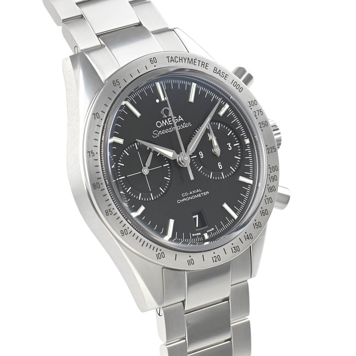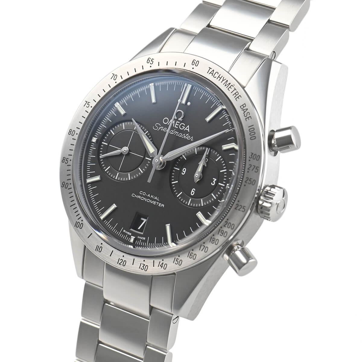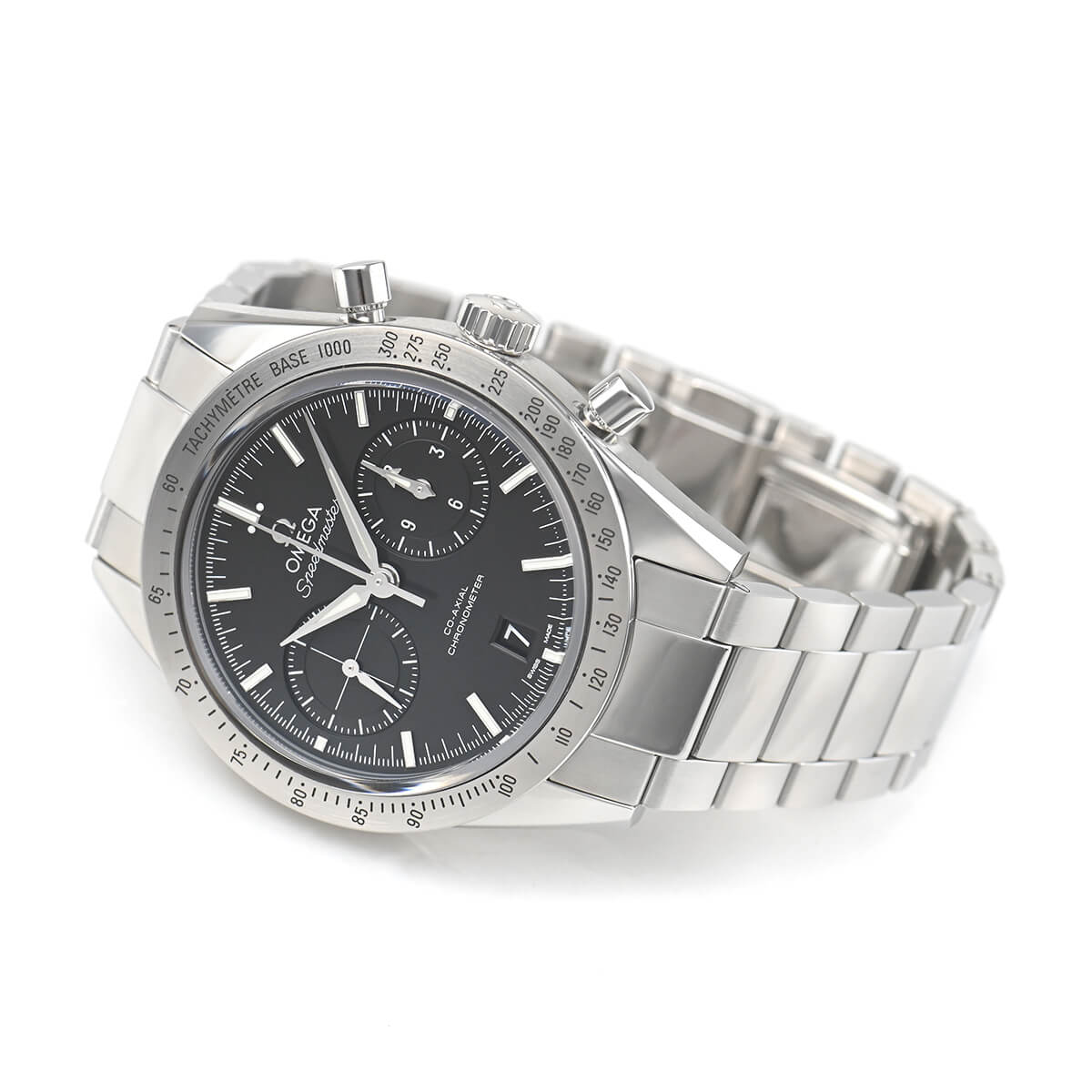 1957年に始まる“スピードマスター”の初代から57年目に登場した現代のスピードマスター「スピードマスター ’57 オメガ コーアクシャル クロノグラフ」。2カウンターとなり、“ムーンウォッチ”とはまた違った雰囲気になりましたが、ブロードアロー型の針やベゼル周りなど初代を思わせる意匠はしっかり残っています。