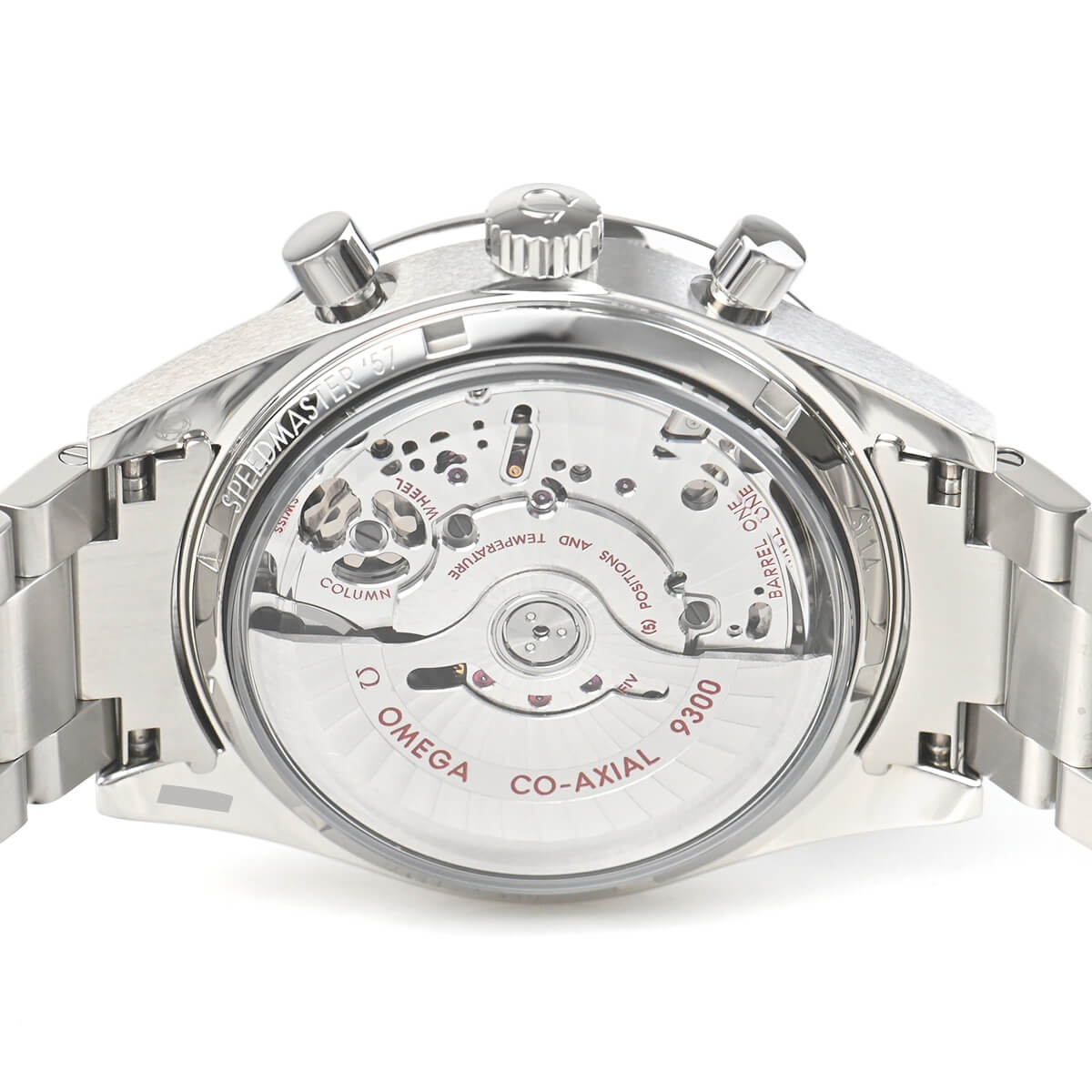 ケースはシースルーバックになっていますので、コーアクシャルシステムを搭載した自社製キャリバー9300を鑑賞することが可能です。