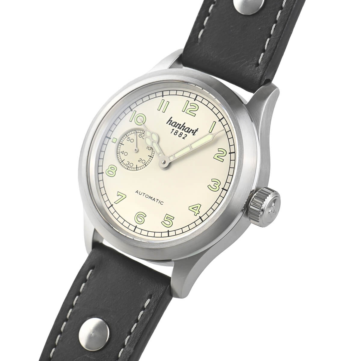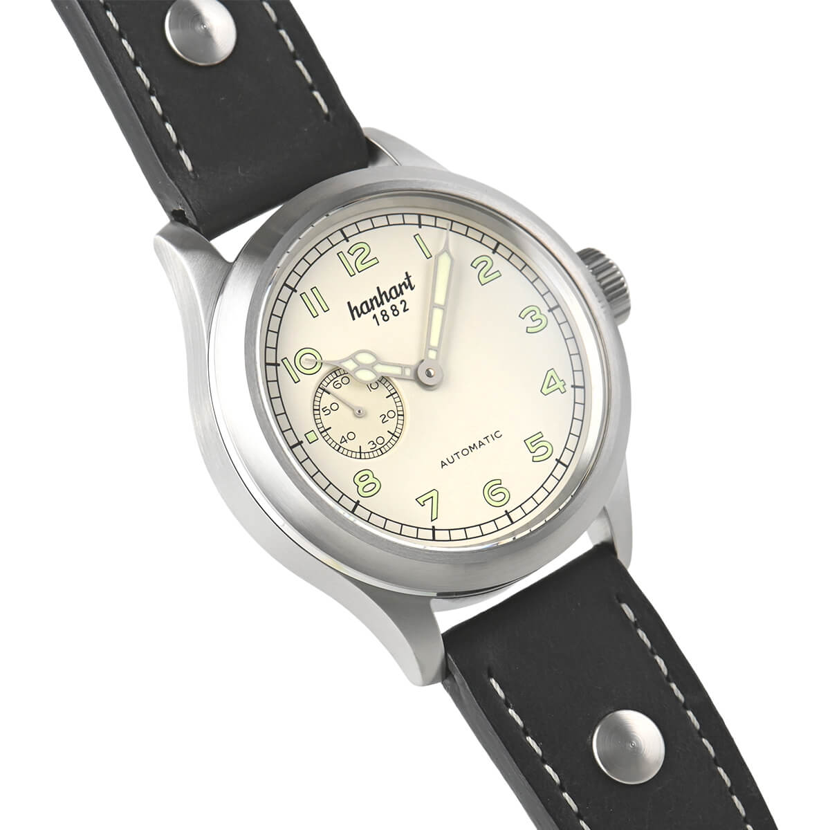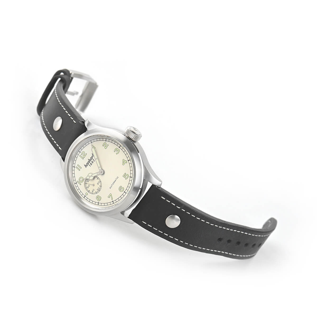 古き良きミリタリーウォッチを連想させる「パイオニア プリヴェンター9」。9時位置のスモールセコンドや大ぶりなリューズなど雰囲気たっぷりです。