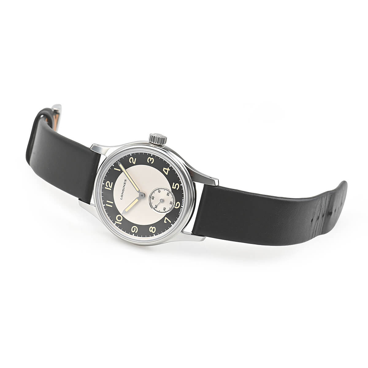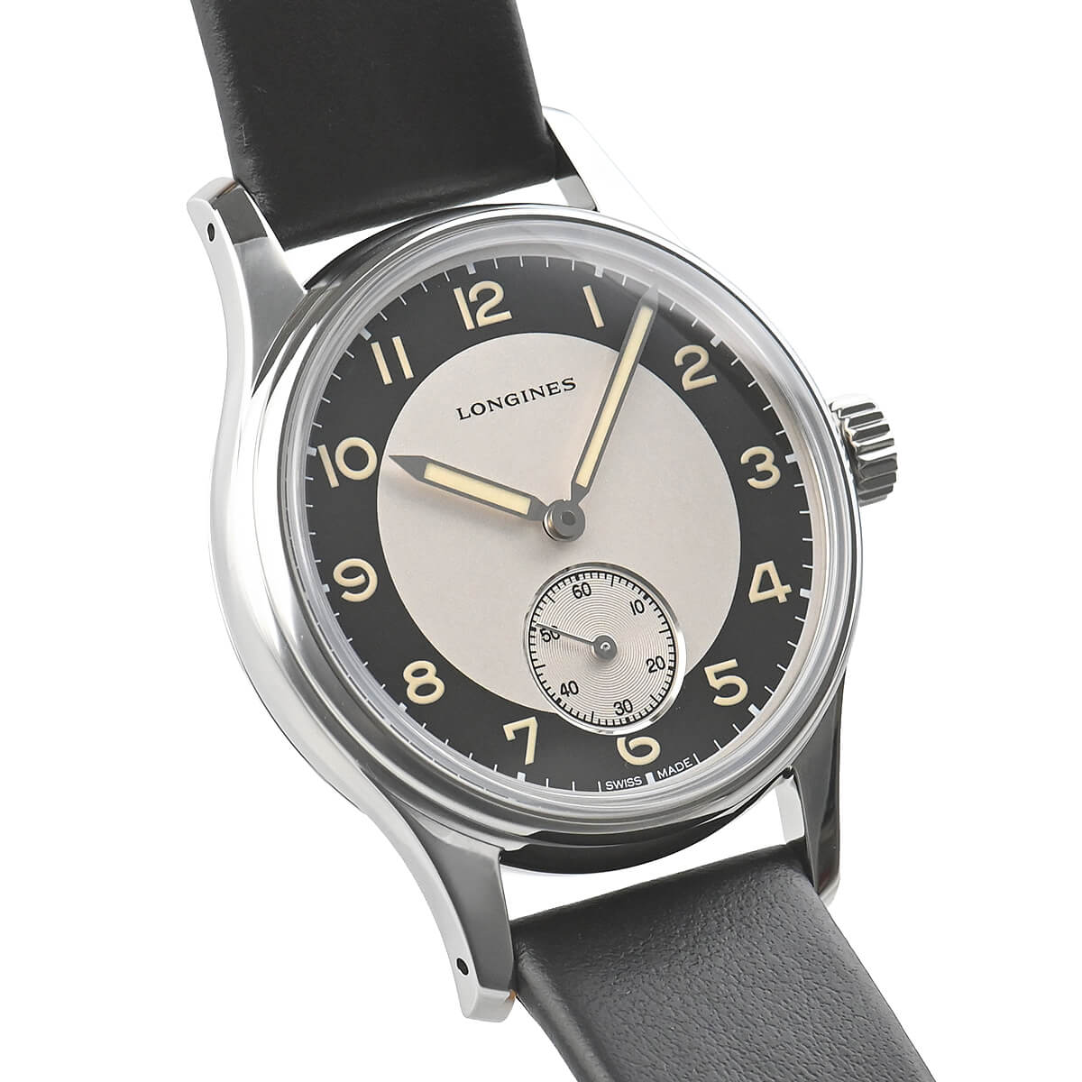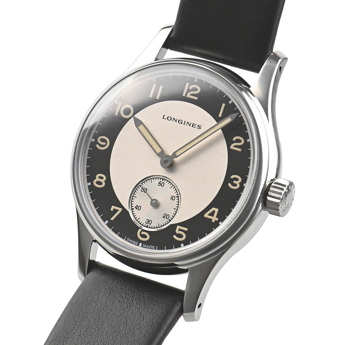 「ヘリテージ」シリーズは、1832年に創業したロンジンの長い歴史と創業時より受け継がれる時計職人のパイオニア精神へのオマージュを具現化したシリーズです。こちらの【ヘリテージ タキシード】は、ロンジンが1940年代に製造したリストウォッチに敬意を表した復刻モデルで、12時位置にプリントされた「LONGINES」のロゴも当時の字体で再現されています。