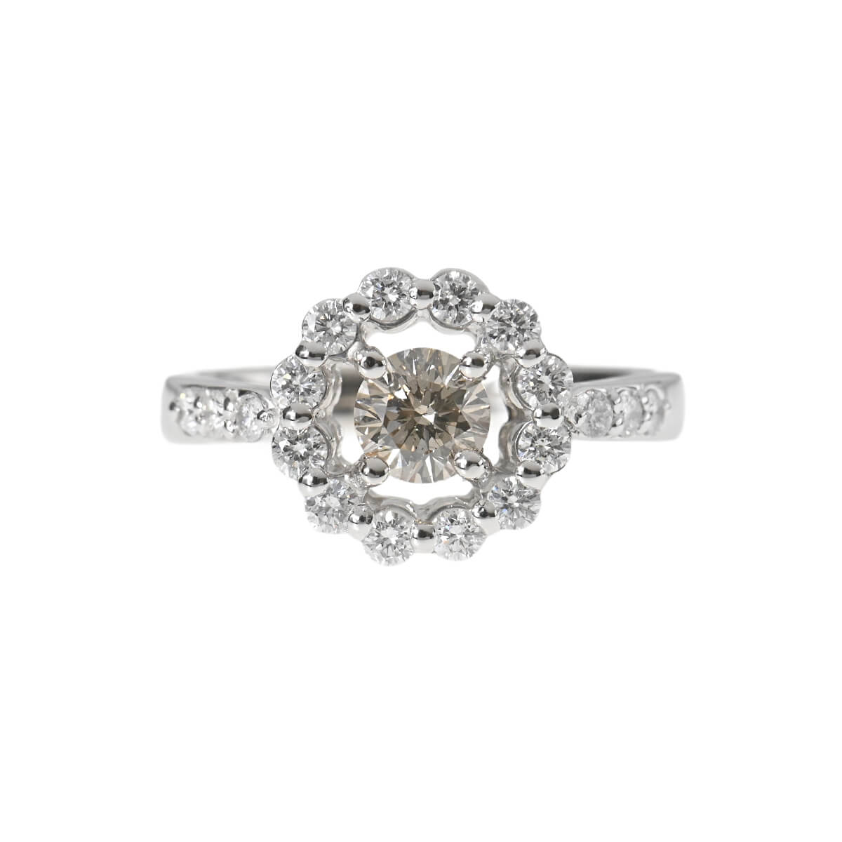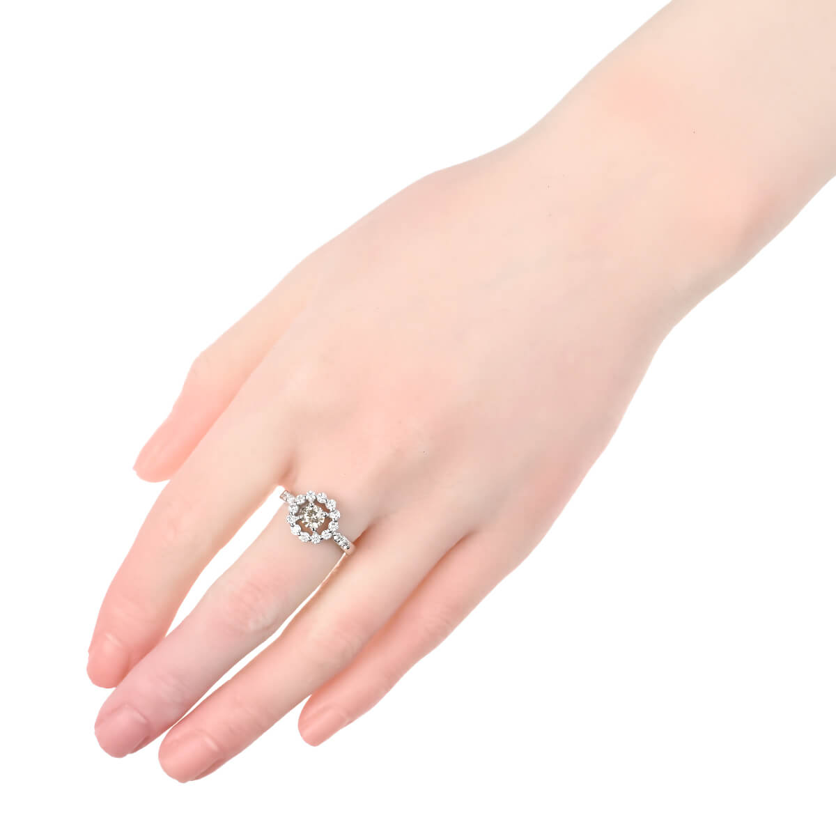 センターに輝く大粒のブラウンダイヤモンドと、それを囲むダイヤモンドが描くラウンドモチーフが一層の存在感を放つプラチナ製リング。レースのような透け感とダイヤモンドの煌めきのコントラストが美しく、さまざまなアングルから光を捉えて指先を華やかに彩ります。アンティークジュエリーのような繊細さとモダンな空気もあわせもつ、日常に本物の輝きを添えてくれるダイヤモンドリングはコストパフォーマンスの高さも魅力。デイリーのカジュアルから和装まで、どんなスタイリングもよりエレガントに品よく仕上げてくれそうですね。