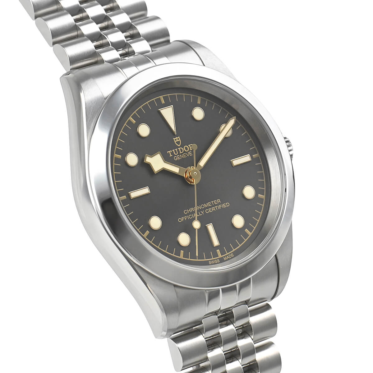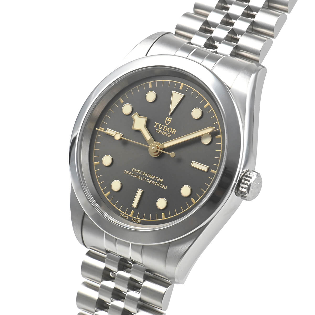 回転ベゼルがなくなったことで強調されるリューズには、現行モデルの盾マークではなくチューダーローズがエングレービングされています。