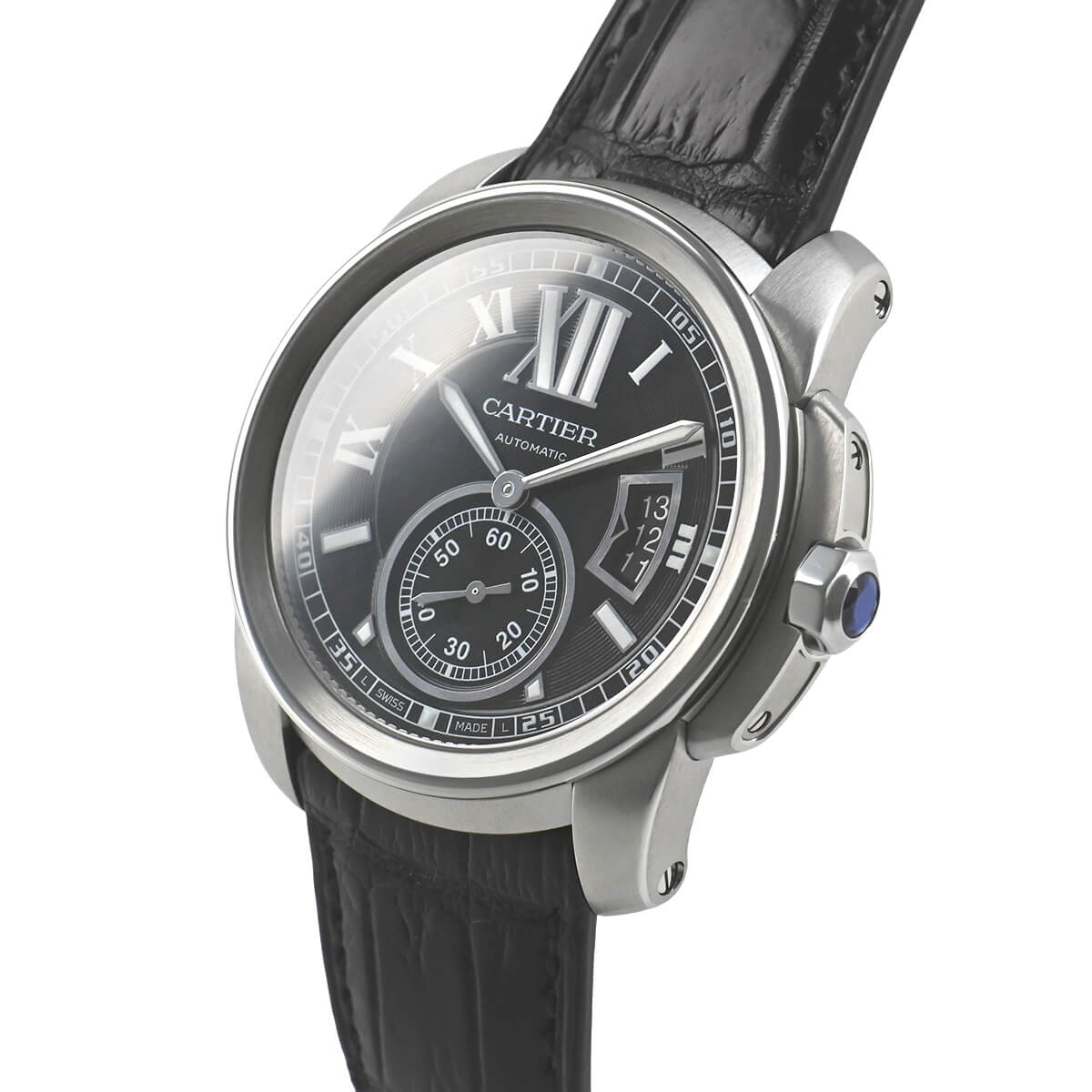 カルティエの“メンズ専用”コレクション「カリブル」。ラグとリューズガードの存在感が男性用モデルらしい力強さを感じさせます。