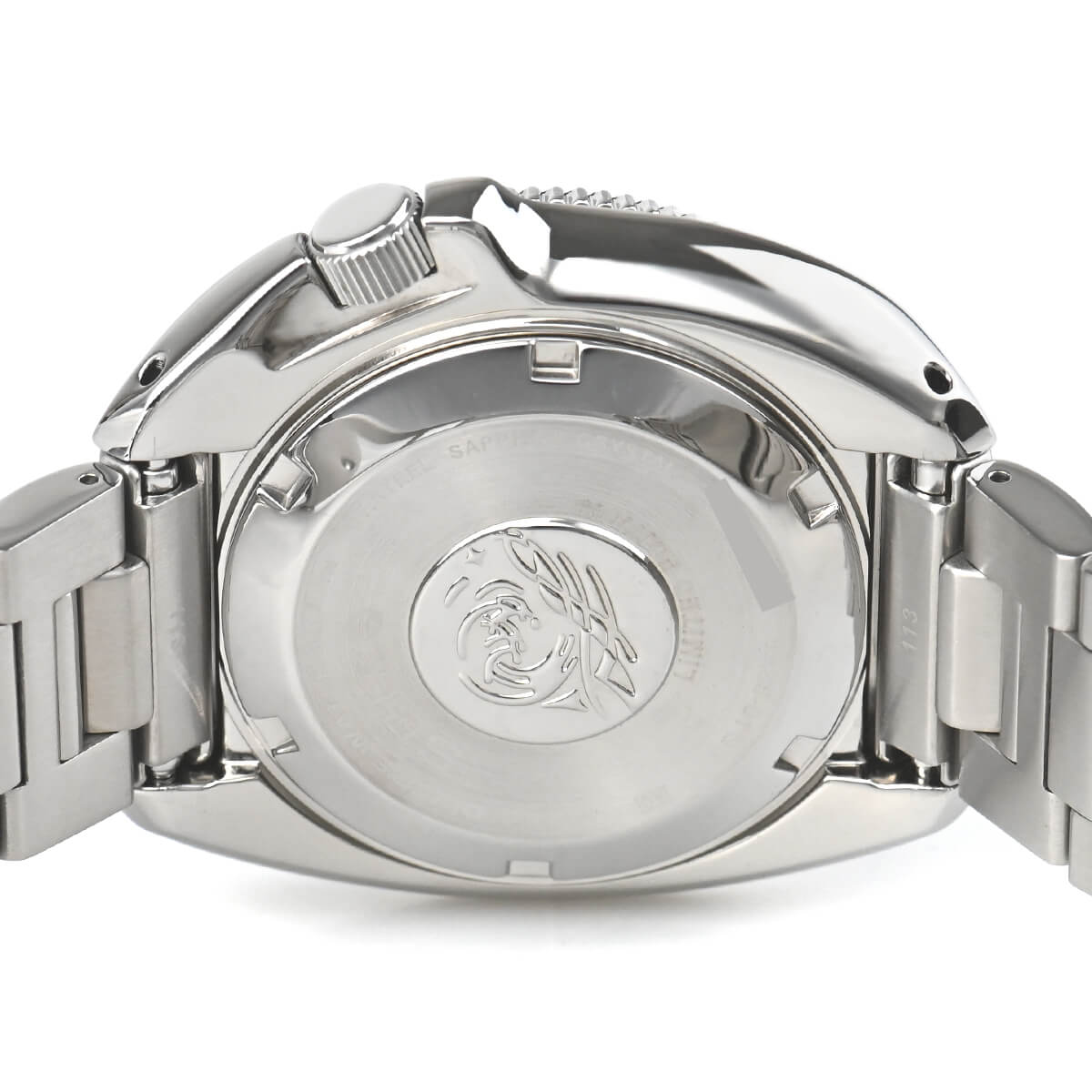 本モデルは1970年に発売された特徴的なリューズデザインを持つ、通称「植村ダイバーズ」を現代解釈して製作されたモデル。