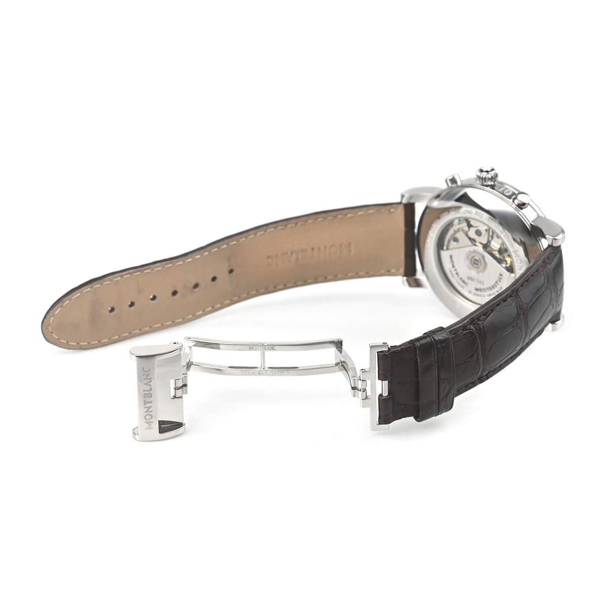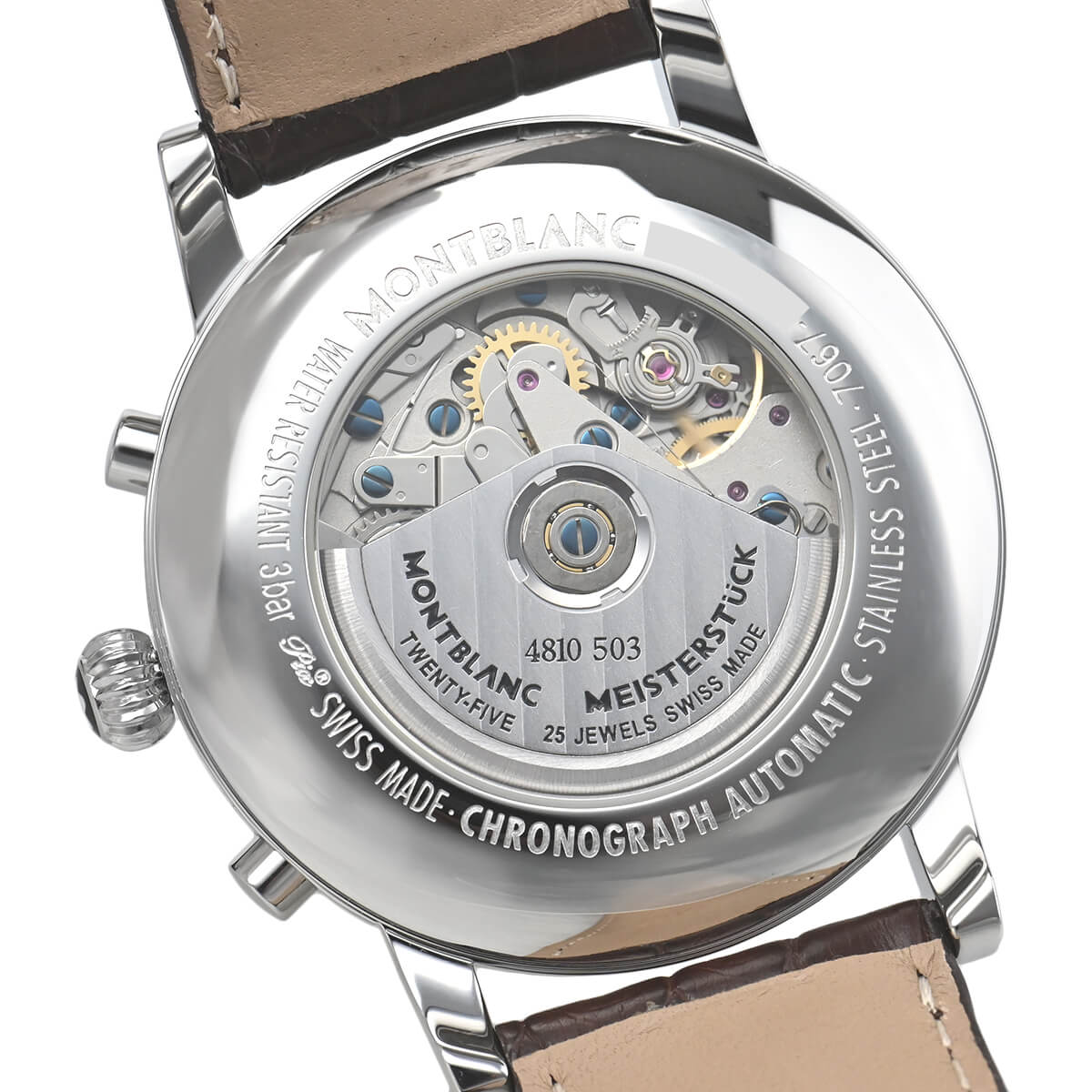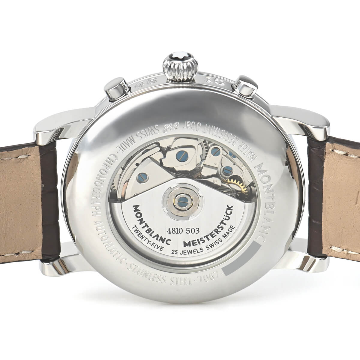 オニオン型のリューズに施された“ホワイトスター”がモンブランの時計であることを主張します。