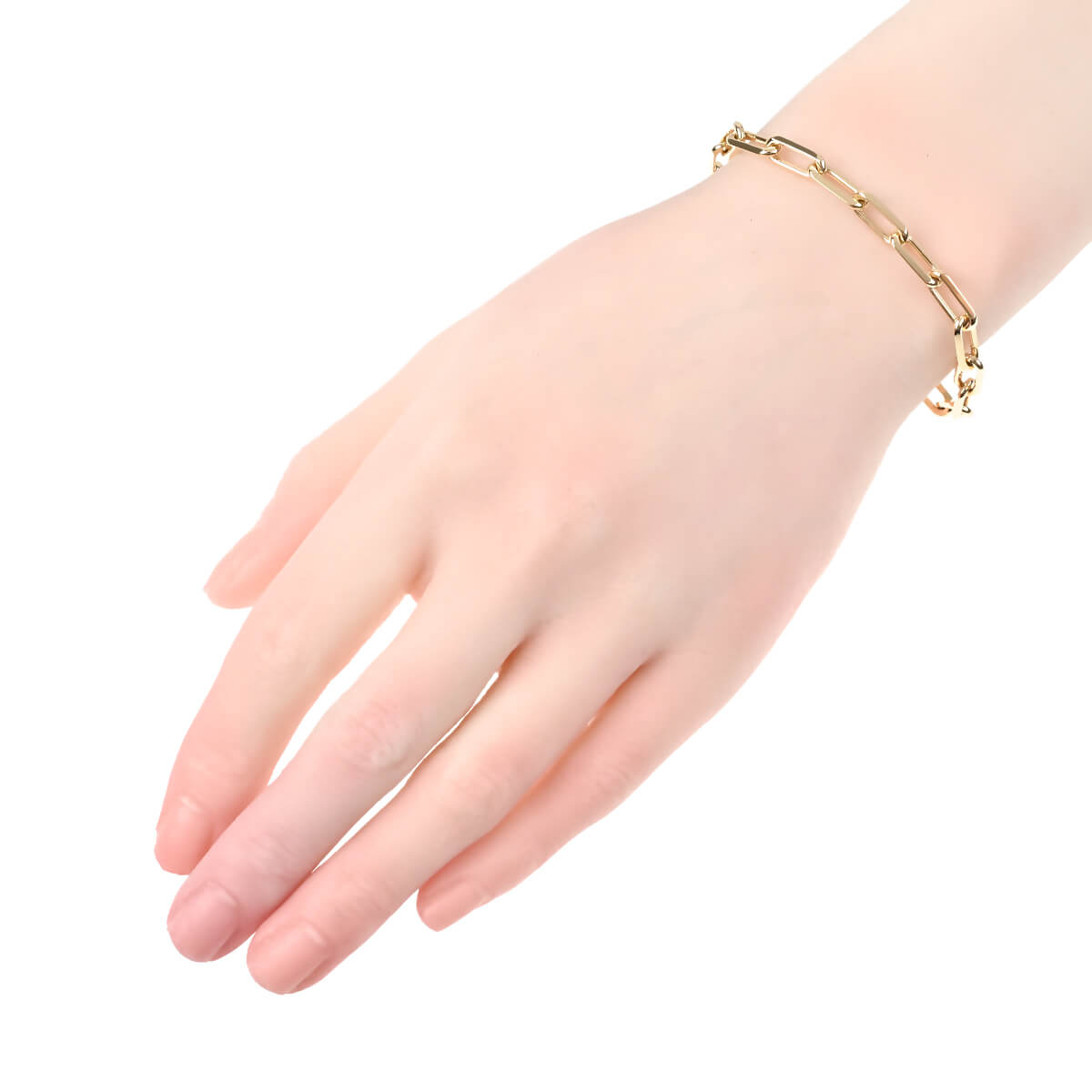 細すぎず太すぎない理想的なボリュームとフォルムをもつチェーンが大人の日常に美しく映える、イエローゴールド製「サントス ドゥ カルティエ」チェーンブレスレット。1本で洗練された美しい存在感を楽しむのはもちろん、素材やデザインの異なるブレスレットや時計とレイヤードする楽しみも。艶もフォルムも絶妙で、1本でも品よくおしゃれな存在感をかなえるサントスのチェーンブレスレットは“その先”の名品ともいえる、宝物としてだけでなくデイリーに活躍する名品アイテムのひとつです。