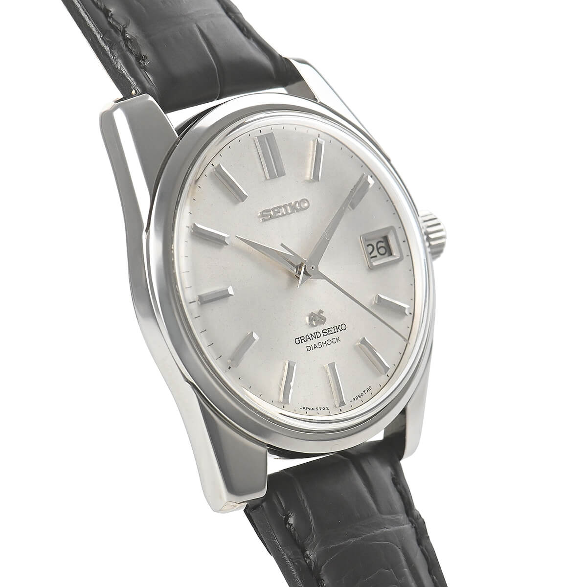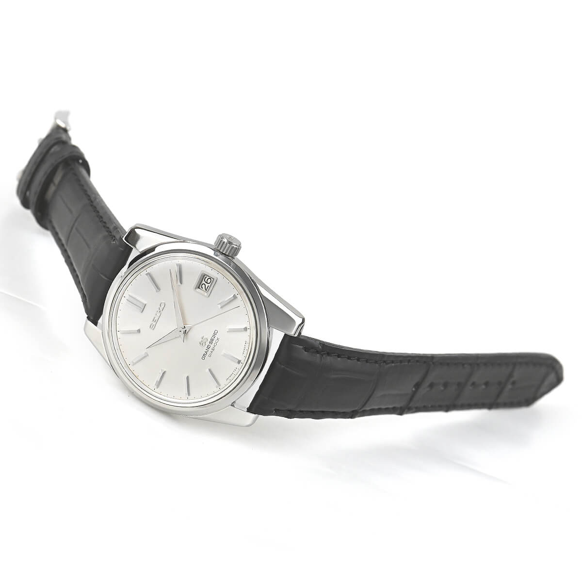 ファイーストモデルのムーブメントをベースに日付表示機能を追加し、防水性能を3気圧から5気圧にスペックアップしたグランドセイコーのスタイルを確立したモデルです。