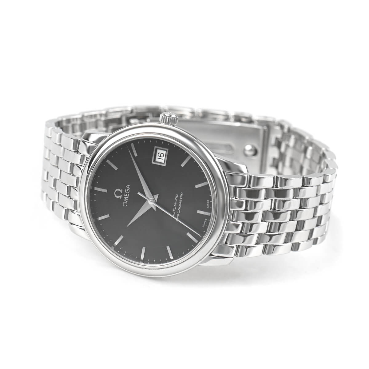 オメガのクラシックライン「デ・ヴィル プレステージ」の男性用オートマチックモデル。プレーンでオーソドックスなデザインは、永くご愛用いただけそうです。
