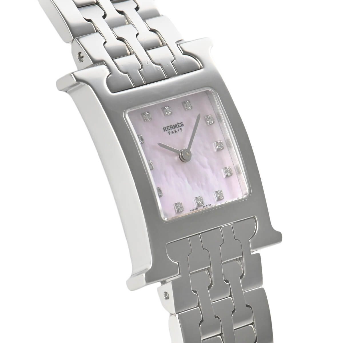 エルメスの頭文字「H」をモチーフにデザインされた「Hウォッチ」。エルメスの腕時計といえば、このモデルを想像される方も多い人気モデルです。