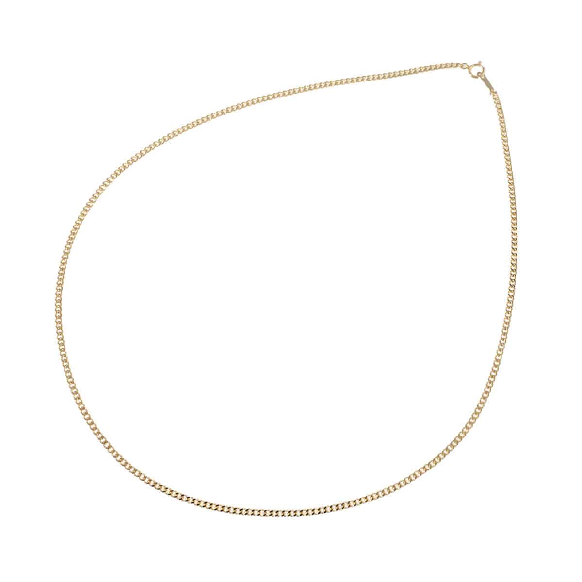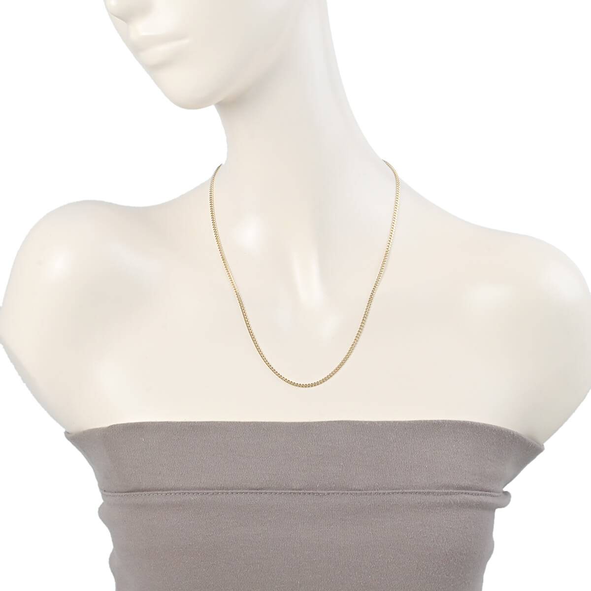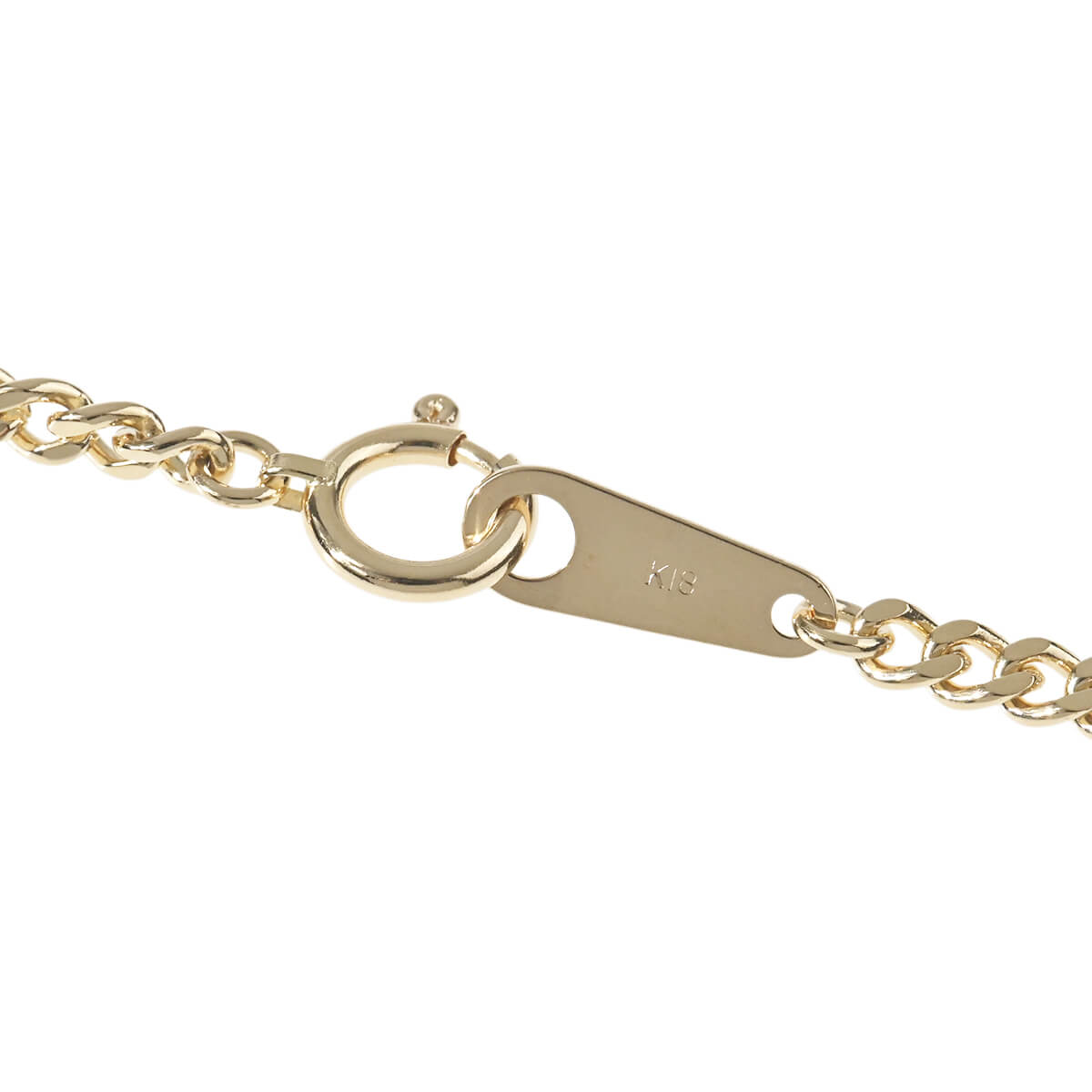 約50センチ、幅約2.5ミリ、約10グラムの、細めのイエローゴールド製2面シングルキヘイチェーンネックレス。キヘイチェーンとは、あずき型のチェーンを90度ひねり、さらに押しつぶしたつくりのデザインチェーンのこと。押しつぶした面が綺麗に並んで同じ面を向き、連続していることによるなめらかな輝きが魅力のデザインチェーンです。上下2平面にカットが施された2面シングルのキヘイチェーンは、カジュアルでスタンダードなデザイン。1本でつけるのはもちろん、ヘッドをとおしたり、レイヤードしたり、シンプルに使えるデザインが魅力。資産価値にも注目されるキヘイは他のチェーンとは違い、単なる装飾品としてだけでなく身につける資産としても人気です。