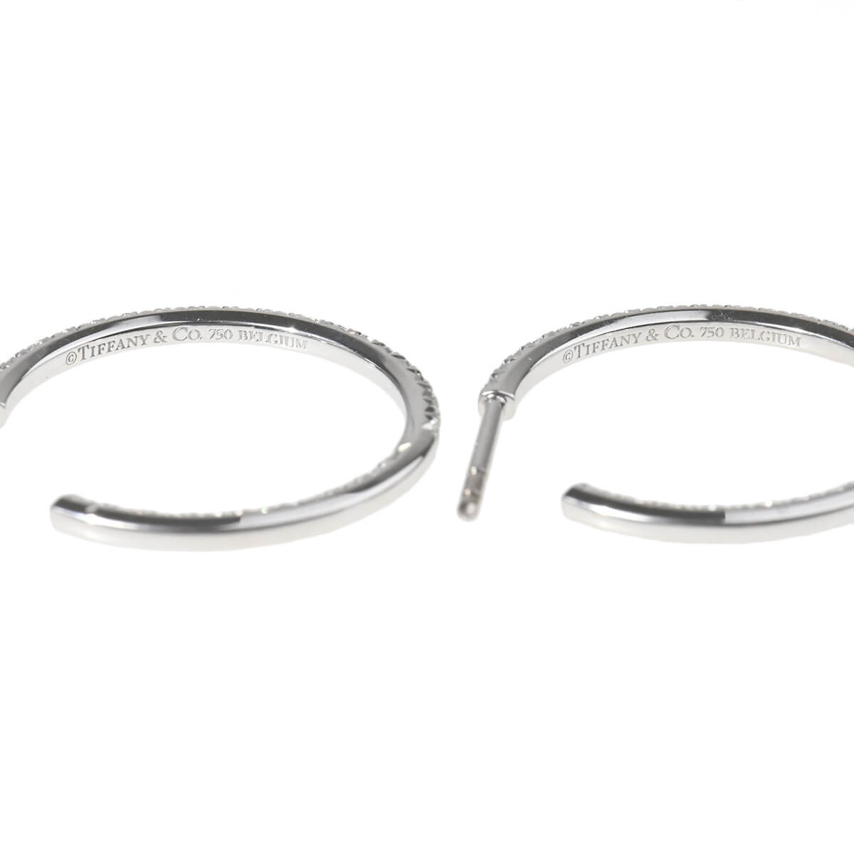無駄のない、ミニマルでモダンなデザインをもつ、『TIFFANY&Co.(ティファニー)』「メトロ」は、ダイヤモンドの細やかなマイクロパヴェセッティングが何とも美しいジュエリーコレクション。ティファニーダイヤモンドのきらめきで描かれたフープが、軽やかで可憐な魅力を放つホワイトゴールド製ピアスです。シンプルであるからこそ引き立つ、洗練された美しさをもつピアス。耳元で光を放つダイヤモンドラインが日常にさりげなくも本物の煌めきを添えてくれる、このうえなく繊細で美しいダイヤモンドジュエリーです。