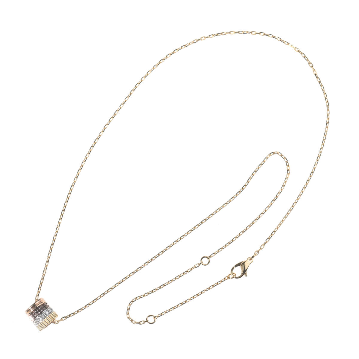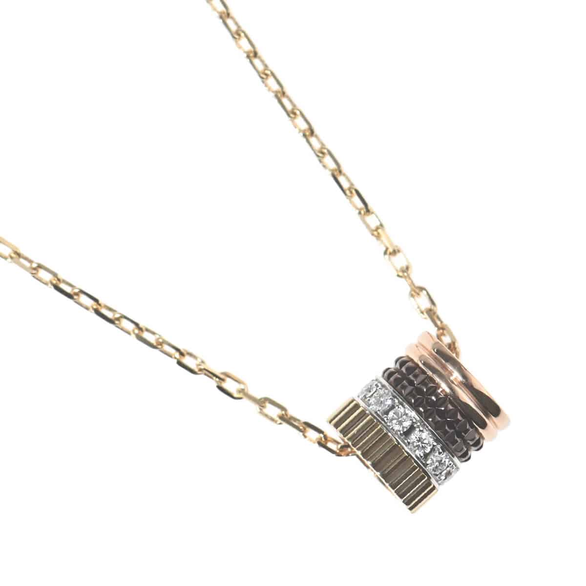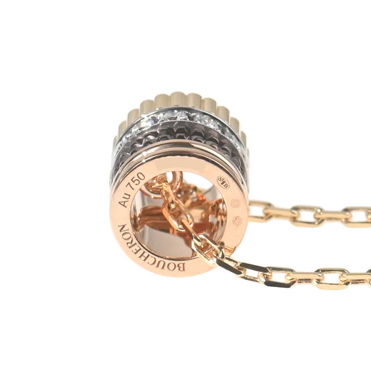 常に新しさを求めてやまない老舗ハイジュエラー『BOUCHERON(ブシュロン)』の、異なるゴールドとテクスチャーの斬新なコンビネーションが美しい、現代的でグラフィカルなジュエリーコレクション「キャトル」。ブシュロンを代表するキャトルは、メゾンの伝統的なモチーフを再解釈し、新たな息吹を与えたアイコニックなジュエリーコレクションです。パリの街を連想させる、メゾンを象徴する「キャトル クラシック」のミニチュアサイズのリングモチーフが、光を放つイエローゴールドチェーンの動きに合わせて揺れて輝くペンダント。イエローゴールド、ピンクゴールド、煌めくダイヤモンド、ブラウンPVDで表現された、グラフィカルなキャトルの4つのコードが洗練されたスタイルをさりげなく惹きたて、身につける人の美しさを際立たせます。